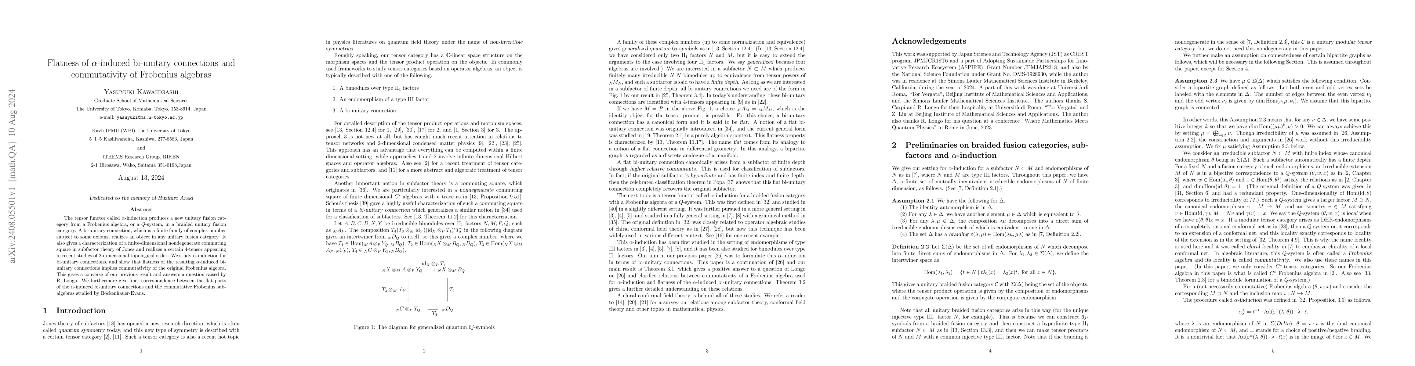 The paper investigates $\alpha$-induction for bi-unitary connections and proves that the flatness of $\alpha$-induced connections implies the commutativity of the original Frobenius algebra, answering a question posed by R. Longo. It also establishes a correspondence between flat parts of these connections and commutative subalgebras.