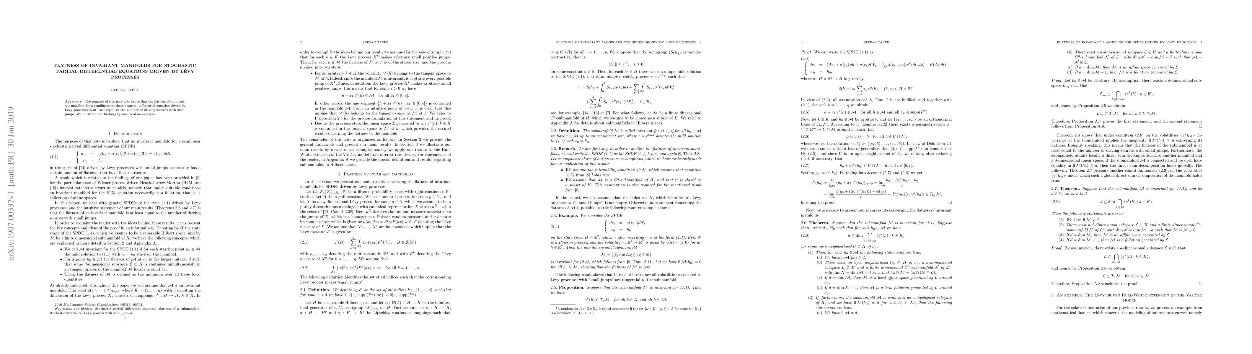 The purpose of this note is to prove that the flatness of an invariant manifold for a semilinear stochastic partial differential equation driven by L\'{e}vy processes is at least equal to the number of driving sources with small jumps. We illustrate our findings by means of an example.