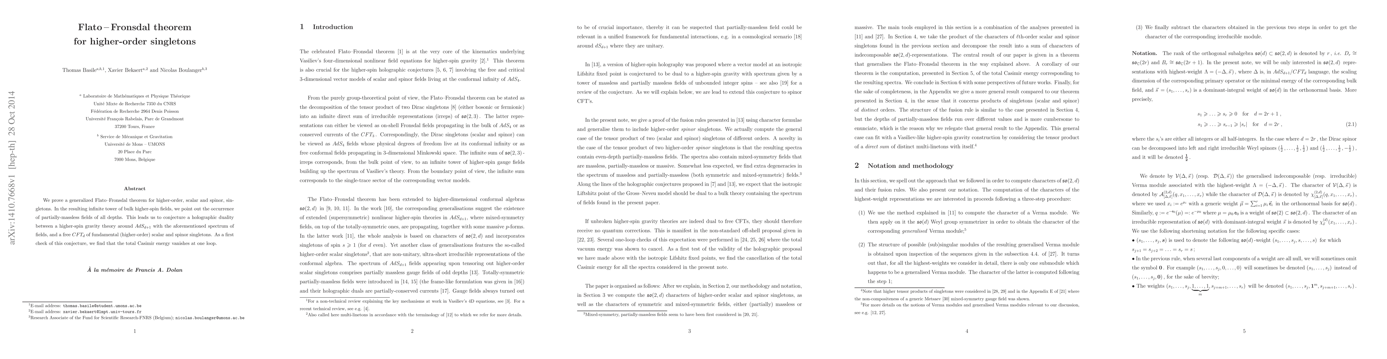 The paper presents a detailed analysis of higher-order singletons, their tensor products, and their decompositions using SO(2,d) characters, leading to a conjectured higher-spin Vasiliev-like bulk theory dual to a Gross-Neveu model at an anisotropic Lifshitz fixed point.