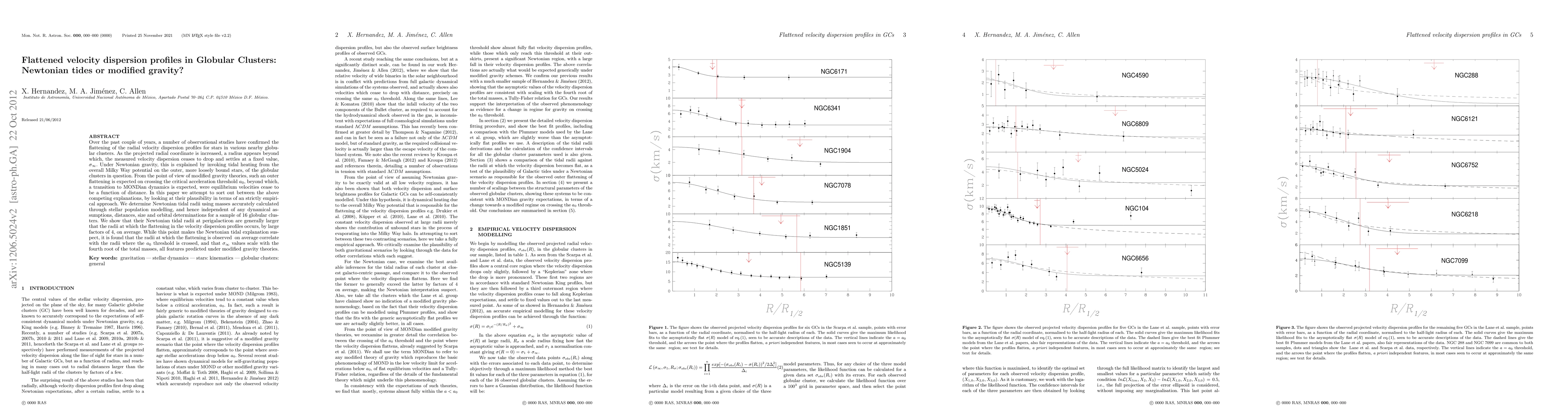 This paper investigates the flattening of radial velocity dispersion profiles in globular clusters, comparing Newtonian tidal heating explanations with modified gravity theories. It finds that Newtonian tidal radii are larger than observed flattening radii, while the observed radii correlate with the modified gravity threshold, suggesting modified gravity may better explain the phenomenon.