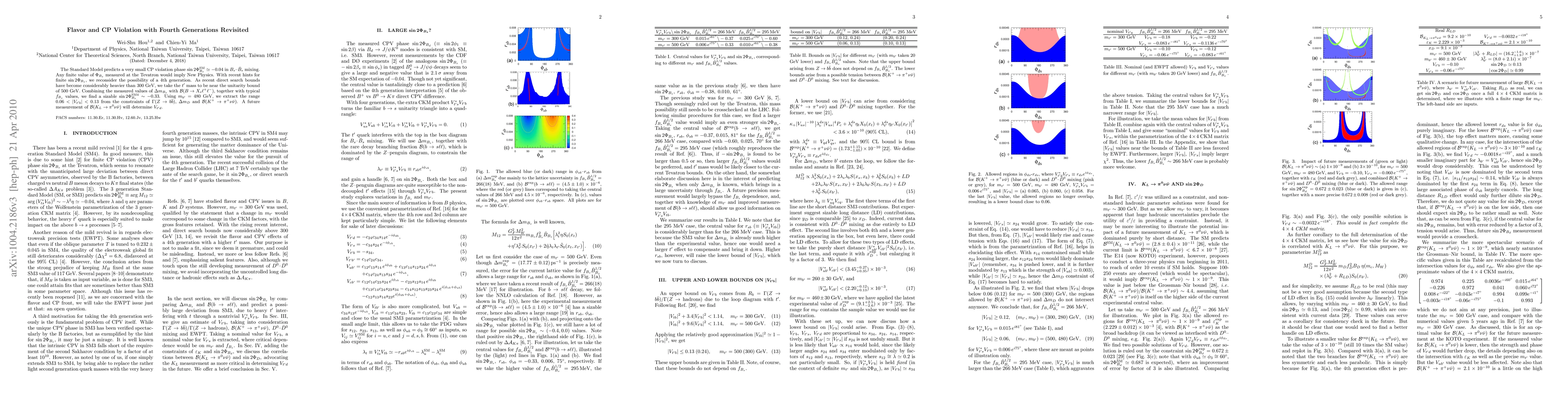 The Standard Model predicts a very small CP violation phase $\sin2\Phi^{\rm SM}_{B_s} \simeq -0.04$%= \arg M_{12} \simeq \arg\,(V^*_{ts}V_{tb})^2$ in $B_s$--$\bar B_s$ mixing. %, i.e. of order $\lambda^2\eta$. Any finite value of $\Phi_{B_s}$ measured at the Tevatron would imply New Physics. With recent hints for finite $\sin2\Phi_{B_s}$, % have appeared from CDF and D\O\, experiments at the Tevatron, we reconsider the possibility of a 4th generation. As recent direct search bounds have become considerably heavier than 300 GeV, we take the $t'$ mass to be near the unitarity bound of 500 GeV. Combining the measured values of $\Delta m_{B_s}$ with ${\cal B}(B \to X_s\ell^+\ell^-)$, together with typical $f_{B_s}$ values, we find a sizable $\sin2\Phi^{\rm SM4}_{B_s} \sim -0.33$. Using %a typical value of $m_{b'} = 480$ GeV, we extract the range % a range of values, $0.06 < |V_{t'b}| < 0.13$ from the constraints of $\Gamma(Z\to b\bar b)$, $\Delta m_{D}$ and ${\cal B}(K^+\to\pi^+\nu\bar\nu)$. A future measurement of ${\cal B}(K_L\to\pi^0\nu\bar\nu)$ will determine $V_{t'd}$.