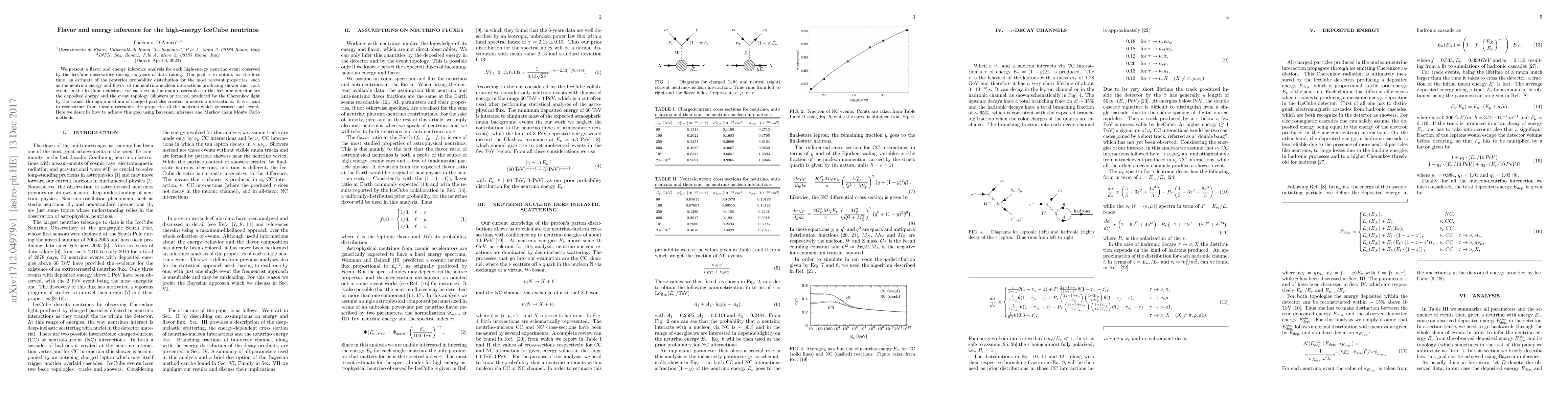 We present a flavor and energy inference analysis for each high-energy neutrino event observed by the IceCube observatory during six years of data taking. Our goal is to obtain, for the first time, an estimate of the posterior probability distribution for the most relevant properties, such as the neutrino energy and flavor, of the neutrino-nucleon interactions producing shower and track events in the IceCube detector. For each event the main observables in the IceCube detector are the deposited energy and the event topology (showers or tracks) produced by the Cherenkov light by the transit through a medium of charged particles created in neutrino interactions. It is crucial to reconstruct from these observables the properties of the neutrino which generated such event. Here we describe how to achieve this goal using Bayesian inference and Markov chain Monte Carlo methods.