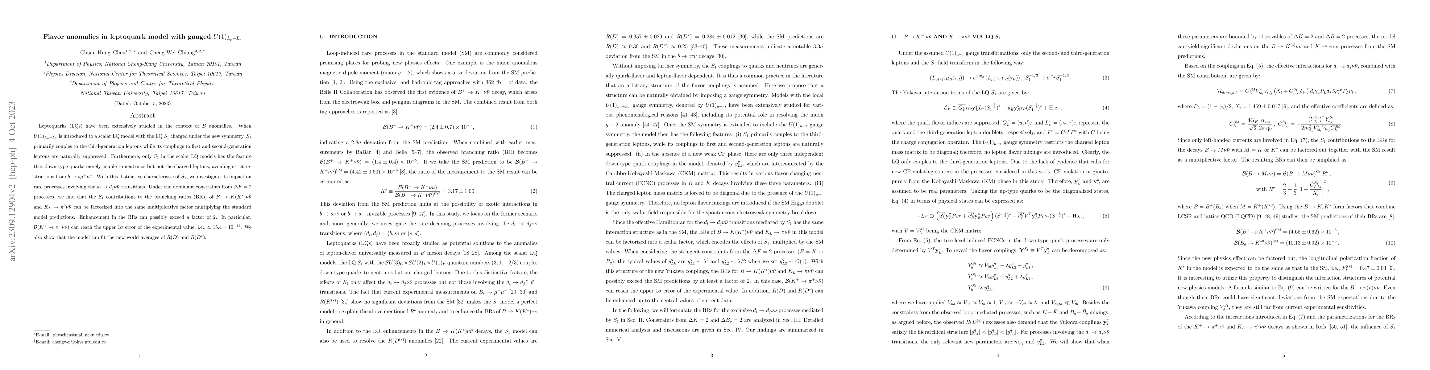 This paper explores flavor anomalies in a leptoquark model with gauged $U(1)_{L_\mu-L_\tau}$, focusing on the scalar leptoquark $S_1$. It finds that $S_1$ can enhance branching ratios of rare processes like $B\to K(K^*) \nu \bar\nu$ and $K_L \to \pi^0 \nu \bar\nu$ by up to a factor of 2, potentially fitting experimental data and new world averages for $R(D)$ and $R(D^*)$.