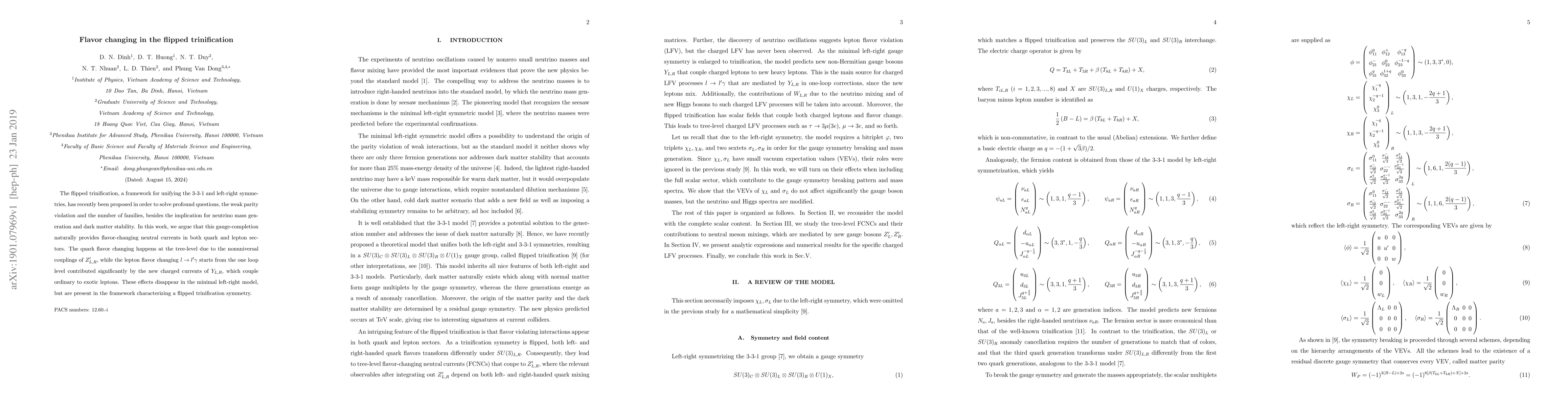 The flipped trinification, a framework for unifying the 3-3-1 and left-right symmetries, has recently been proposed in order to solve profound questions, the weak parity violation and the number of families, besides the implication for neutrino mass generation and dark matter stability. In this work, we argue that this gauge-completion naturally provides flavor-changing neutral currents in both quark and lepton sectors. The quark flavor changing happens at the tree-level due to the nonuniversal couplings of $Z'_{L,R}$, while the lepton flavor changing $l\rightarrow l'\gamma$ starts from the one loop level contributed significantly by the new charged currents of $Y_{L,R}$, which couple ordinary to exotic leptons. These effects disappear in the minimal left-right model, but are present in the framework characterizing a flipped trinification symmetry.