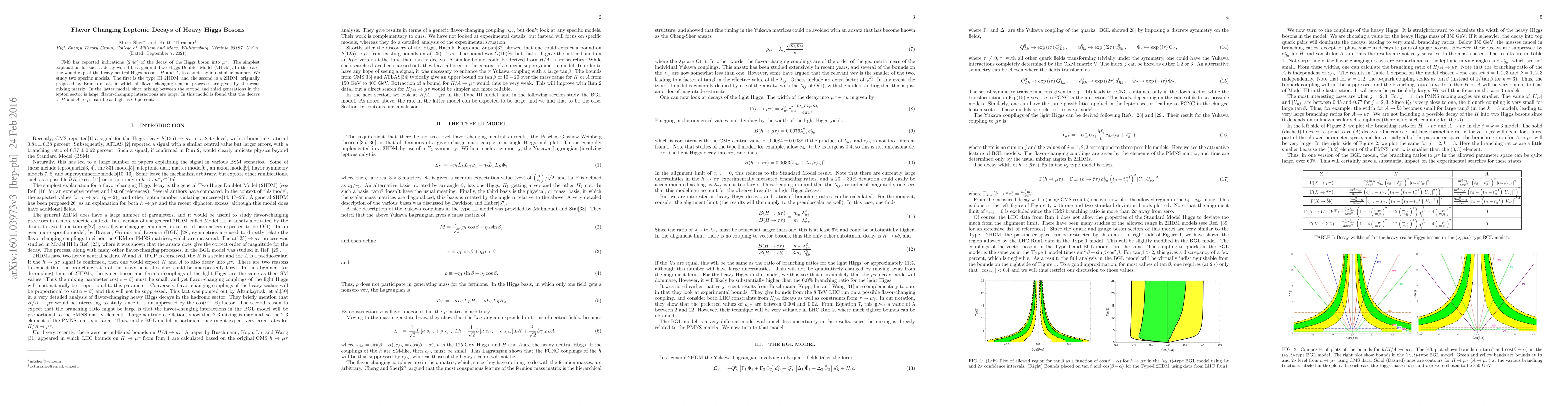 CMS has reported indications (2.4\sigma) of the decay of the Higgs boson into \mu\tau. The simplest explanation for such a decay would be a general Two Higgs Doublet Model (2HDM). In this case, one would expect the heavy neutral Higgs bosons, H and A, to also decay in a similar manner. We study two specific models. The first is the type III 2HDM, and the second is a 2HDM, originally proposed by Branco et al., in which all flavor-changing neutral processes are given by the weak mixing matrix. In the latter model, since mixing between the second and third generations in the lepton sector is large, flavor-changing interactions are large. In this model it is found that the decays of H and A to \mu\tau can be as high as 60 percent. This work has nothing to do with the 750 GeV diphoton resonance.