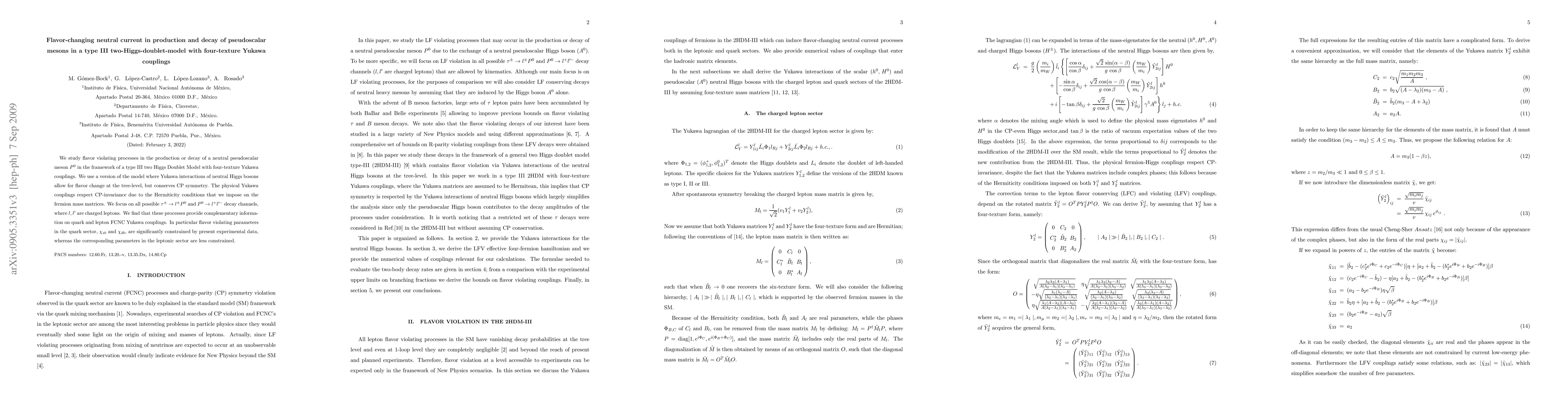We study flavor violating processes in the production or decay of a neutral pseudoscalar meson $P^0$ in the framework of a general two Higgs Doublet Model type III (2HDM-III). We use a version of the model where Yukawa interactions of neutral Higgs bosons allow for flavor change at the tree-level, but conserves CP symmetry. We focus on all possible $\tau^{\pm} \to l^{\pm}P^0 $ and $P^0 \to l^+l'^-$ decay channels, where $l,l'$ are charged leptons. We find that these processes provide complementary information on quark and lepton FCNC Yukawa couplings. In particular flavor violating parameters in the quark sector, $\chi_{sb}$ and $\chi_{db}$, are significantly constrained by present experimental data, whereas the corresponding parameters in the leptonic sector are less constrained.