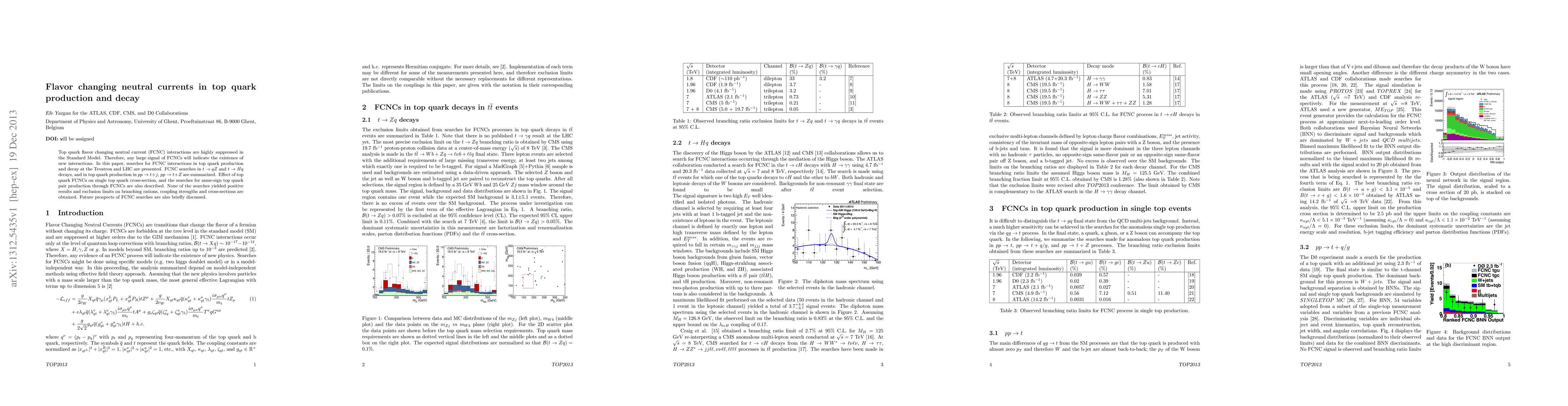 This paper investigates potential flavor changing neutral currents (FCNC) in top quark production and decay at the Tevatron and LHC, finding no positive signals but establishing exclusion limits on related branching ratios and coupling strengths. Future prospects for FCNC searches are also outlined.
