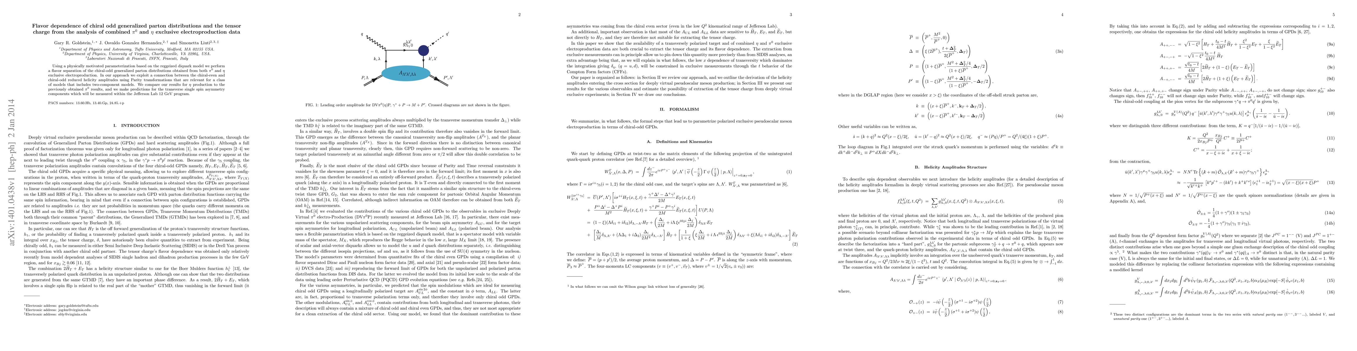 Using a physically motivated parameterization based on the reggeized diquark model we perform a flavor separation of the chiral-odd generalized parton distributions obtained from both $\pi^0$ and $\eta$ exclusive electroproduction. In our approach we exploit a connection between the chiral-even and chiral-odd reduced helicity amplitudes using Parity transformations that are relevant for a class of models that includes two-component models. We compare our results for $\eta$ production to the previously obtained $\pi^0$ results, and we make predictions for the transverse single spin asymmetry components which will be measured within the Jefferson Lab 12 GeV program.