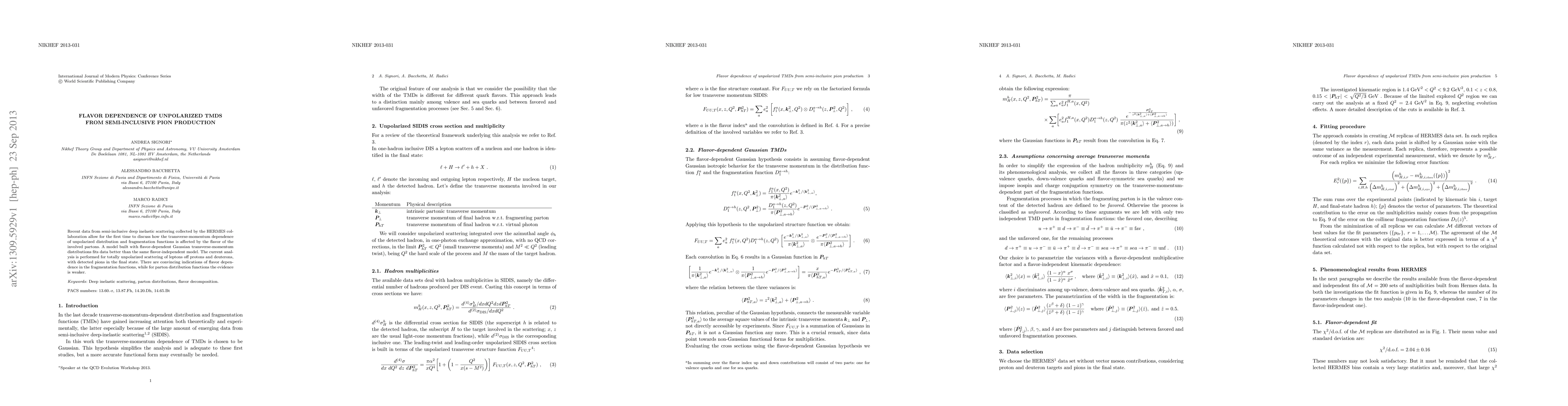 Recent data from semi-inclusive deep inelastic scattering collected by the HERMES collaboration allow for the first time to discuss how the transverse-momentum dependence of unpolarized distribution and fragmentation functions is affected by the flavor of the involved partons. A model built with flavor-dependent Gaussian transverse-momentum distributions fits data better than the same flavor-independent model. The current analysis is performed for totally unpolarized scattering of leptons off protons and deuterons, with detected pions in the final state. There are convincing indications of flavor dependence in the fragmentation functions, while for parton distribution functions the evidence is weaker.