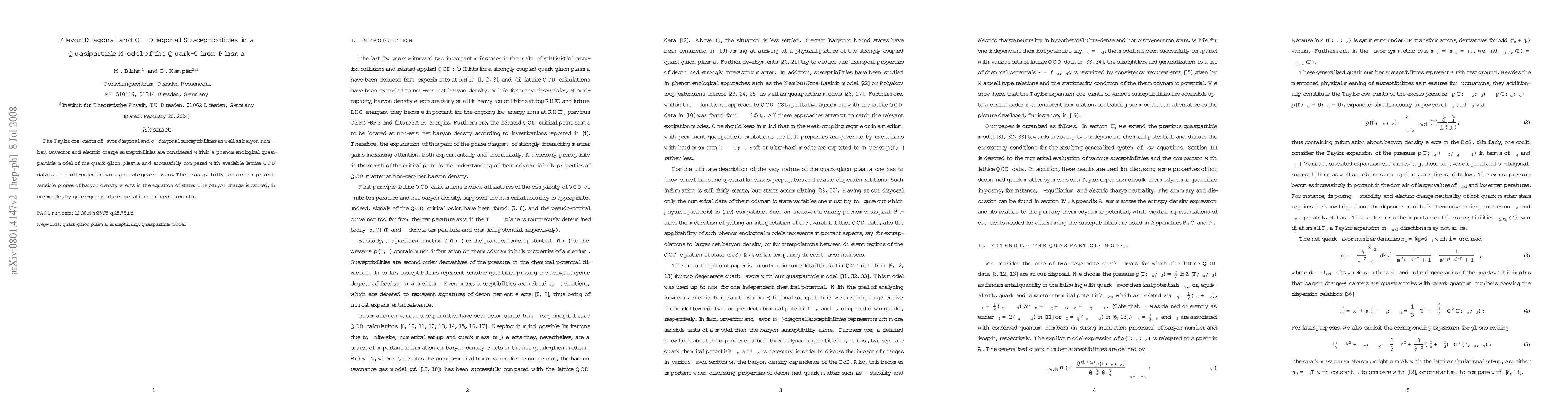 This paper explores flavor diagonal and off-diagonal susceptibilities in a quasiparticle model of the quark-gluon plasma, comparing results with lattice QCD data. The study reveals how these susceptibilities serve as probes for baryon density effects in the plasma's equation of state.