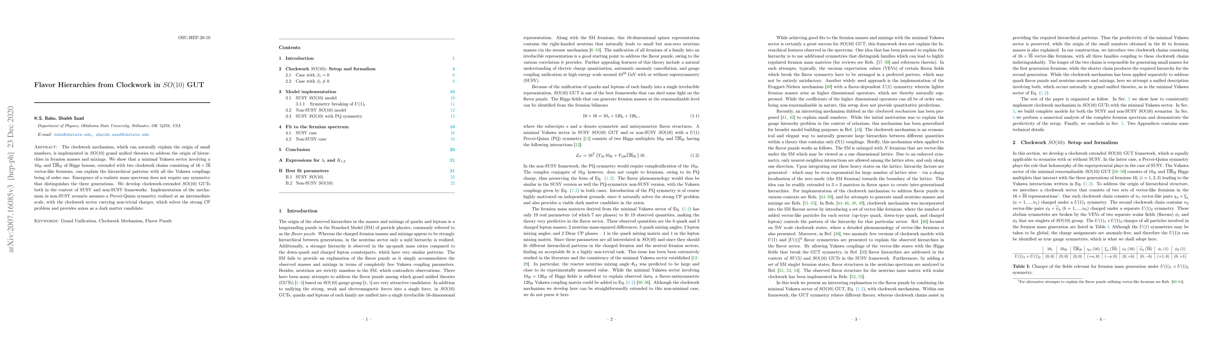 This paper explores the clockwork mechanism within $SO(10)$ grand unified theories to explain fermion mass hierarchies, using a minimal Yukawa sector and two clockwork chains of vector-like fermions. The approach naturally generates a realistic mass spectrum without requiring special symmetries for different generations, and it addresses the strong CP problem and provides a dark matter candidate in non-SUSY scenarios.