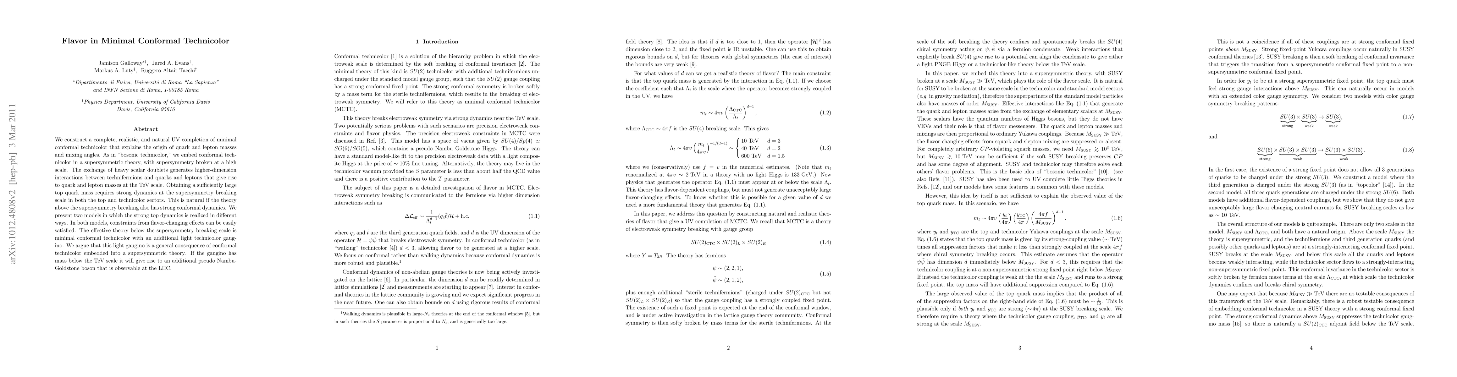 This paper proposes a UV completion of minimal conformal technicolor that explains quark and lepton masses and mixing angles, embedding it in a supersymmetric framework with high-scale supersymmetry breaking. The models presented ensure strong dynamics for a large top quark mass and satisfy flavor constraints, potentially predicting an observable pseudo Nambu-Goldstone boson at the LHC.