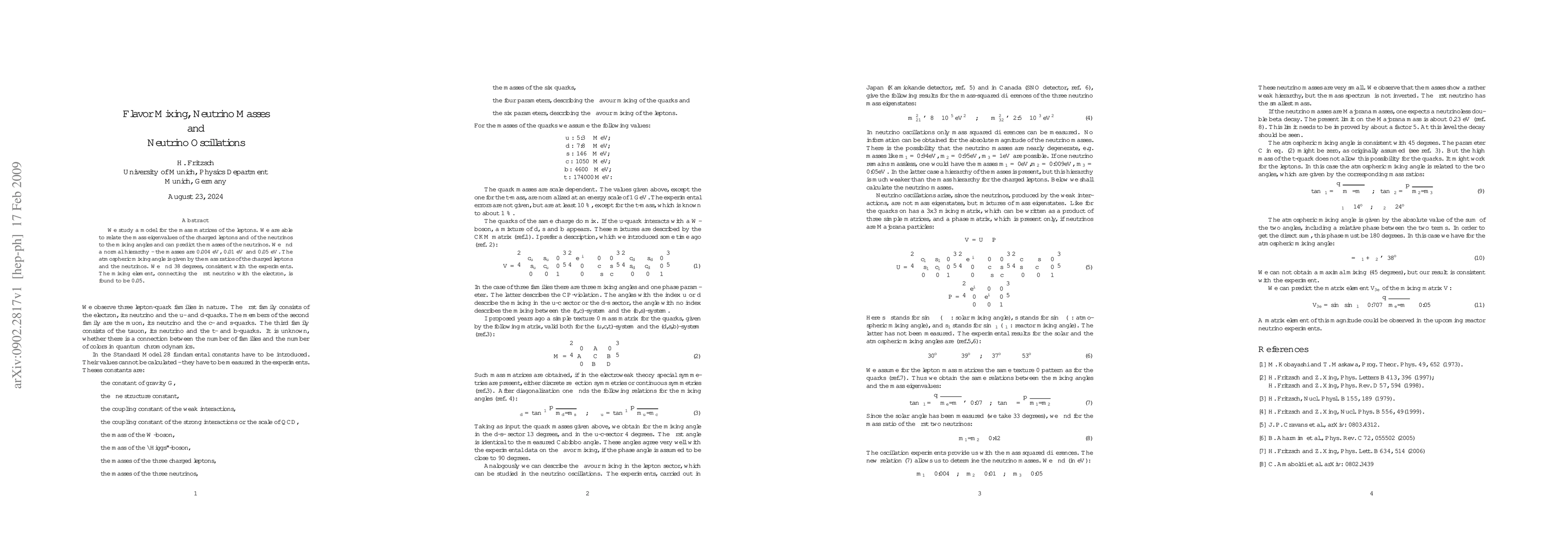 We study a model for the mass matrices of the leptons. We are ablte to relate the mass eigenvalues of the charged leptons and of the neutrinos to the mxiing angles and can predict the masses of the neutrinos. We find a normal hierarchy -the masses are 0.004 eV, 0.01 eV and 0.05 eV. The atmospheric mixing angle is given by the mass ratios of the charged leptons and of the neutrinos. We find 38 degrees, consistent with the experiments. The mixing element, connecting the first neutrino with the electron, is found to be 0.05.