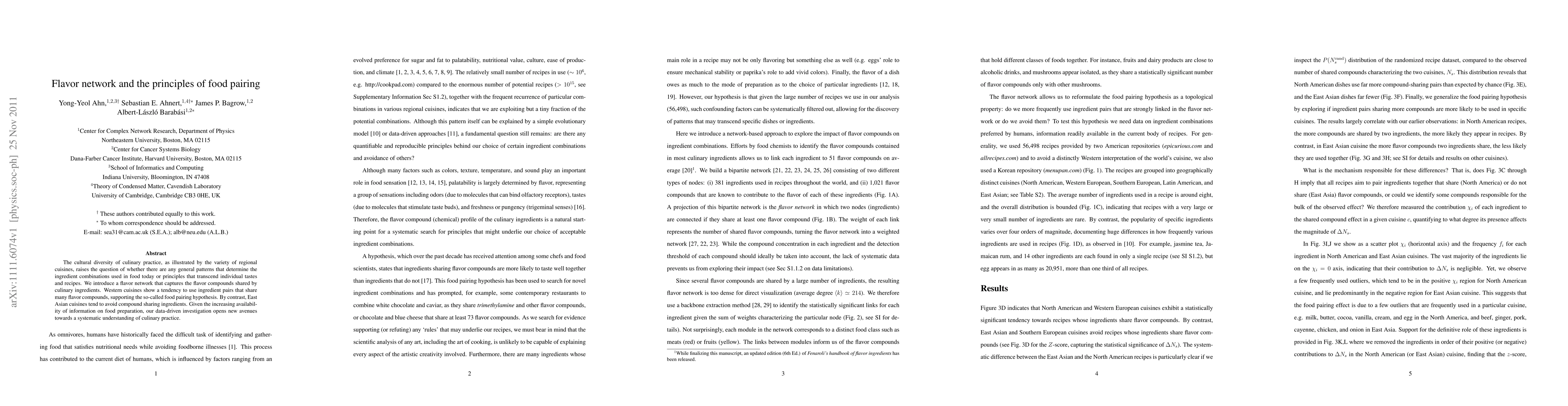 This paper explores the underlying principles of food pairing through a flavor network that identifies shared flavor compounds among ingredients. Western cuisines favor ingredient pairs with many shared compounds, while East Asian cuisines tend to avoid such pairings, suggesting distinct culinary practices across cultures.