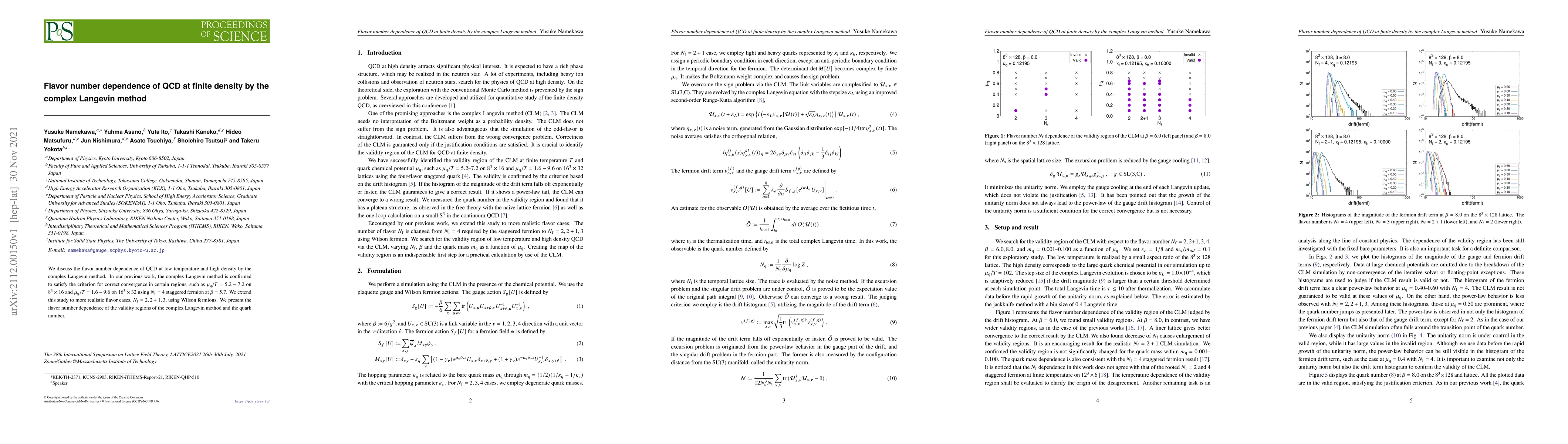 We discuss the flavor number dependence of QCD at low temperature and high density by the complex Langevin method. In our previous work, the complex Langevin method is confirmed to satisfy the criterion for correct convergence in certain regions, such as $\mu_{\rm q} / T = 5.2-7.2$ on $8^3 \times 16$ and $\mu_{\rm q} / T = 1.6-9.6$ on $16^3 \times 32$ using $N_{\rm f} = 4$ staggered fermion at $\beta = 5.7$. We extend this study to more realistic flavor cases, $N_{\rm f} = 2, 2 + 1, 3$, using Wilson fermions. We present the flavor number dependence of the validity regions of the complex Langevin method and the quark number.