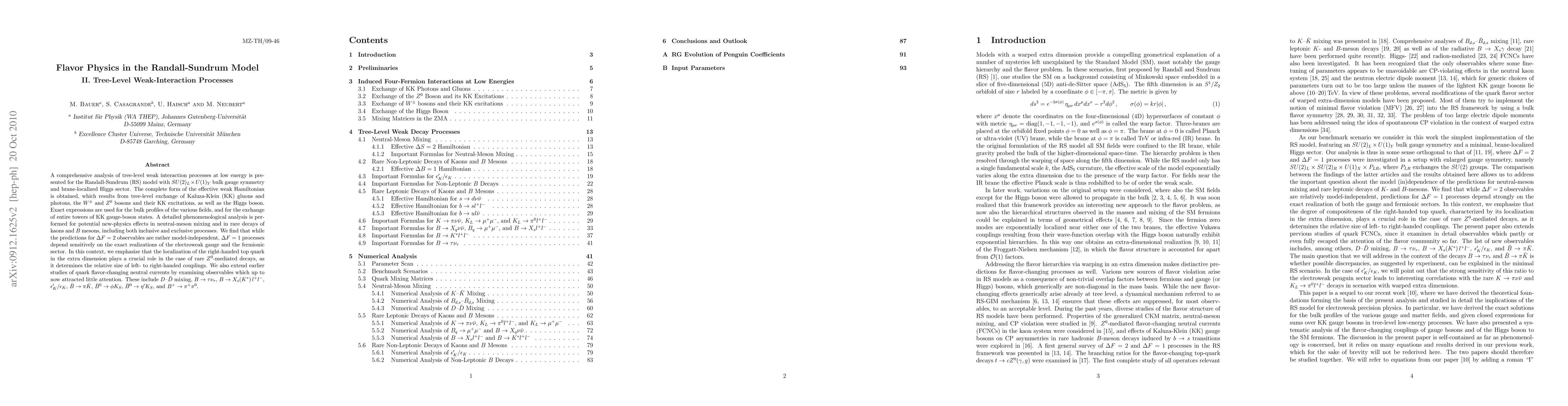 A comprehensive analysis of tree-level weak interaction processes at low energy is presented for the Randall-Sundrum (RS) model with SU(2)_L * U(1)_Y bulk gauge symmetry and brane-localized Higgs sector. The complete form of the effective weak Hamiltonian is obtained, which results from tree-level exchange of Kaluza-Klein (KK) gluons and photons, the W^+- and Z^0 bosons and their KK excitations, as well as the Higgs boson. Exact expressions are used for the bulk profiles of the various fields, and for the exchange of entire towers of KK gauge-boson states. A detailed phenomenological analysis is performed for potential new-physics effects in neutral-meson mixing and in rare decays of kaons and B mesons, including both inclusive and exclusive processes. We find that while the predictions for \Delta(F)=2 observables are rather model-independent, \Delta(F)=1 processes depend sensitively on the exact realizations of the electroweak gauge and the fermionic sector. In this context, we emphasize that the localization of the right-handed top quark in the extra dimension plays a crucial role in the case of rare Z^0-mediated decays, as it determines the relative size of left- to right-handed couplings. We also extend earlier studies of quark flavor-changing neutral currents by examining observables which up to now attracted little attention. These include D-D(bar) mixing, B-->\tau\nu, B-->X_s (K^*) l^+ l^-, \epsilon_K'/\epsilon_K, B-->\pi K, B^0-->\phi K_S, B^0-->\eta' K_S, and B^+-->\pi^+\pi^0.