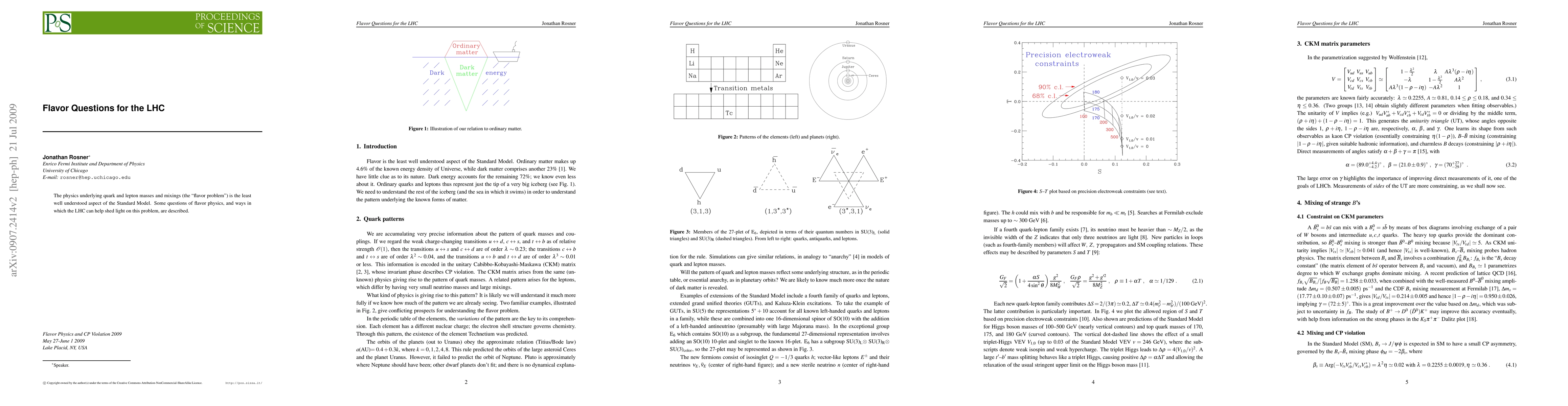 The physics underlying quark and lepton masses and mixings (the "flavor problem") is the least well understood aspect of the Standard Model. Some questions of flavor physics, and ways in which the LHC can help shed light on this problem, are described.