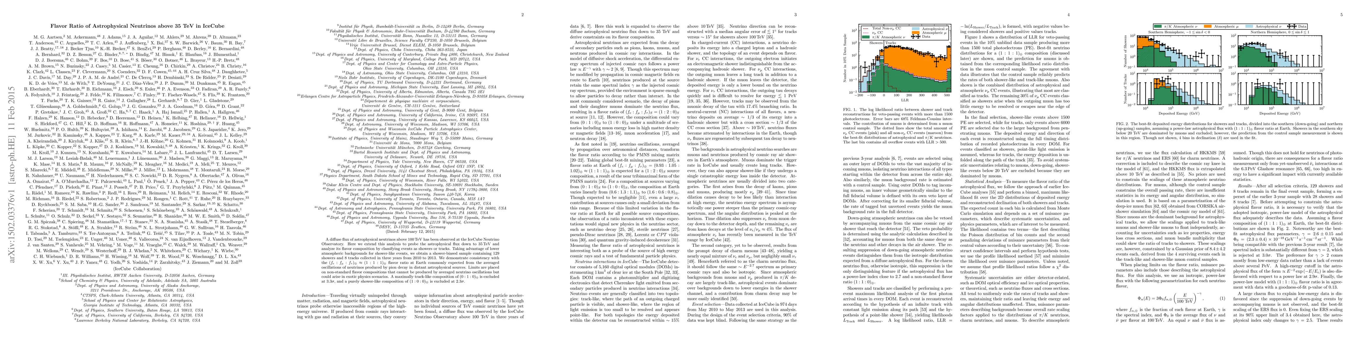 A diffuse flux of astrophysical neutrinos above $100\,\mathrm{TeV}$ has been observed at the IceCube Neutrino Observatory. Here we extend this analysis to probe the astrophysical flux down to $35\,\mathrm{TeV}$ and analyze its flavor composition by classifying events as showers or tracks. Taking advantage of lower atmospheric backgrounds for shower-like events, we obtain a shower-biased sample containing 129 showers and 8 tracks collected in three years from 2010 to 2013. We demonstrate consistency with the $(f_e:f_{\mu}:f_\tau)_\oplus\approx(1:1:1)_\oplus$ flavor ratio at Earth commonly expected from the averaged oscillations of neutrinos produced by pion decay in distant astrophysical sources. Limits are placed on non-standard flavor compositions that cannot be produced by averaged neutrino oscillations but could arise in exotic physics scenarios. A maximally track-like composition of $(0:1:0)_\oplus$ is excluded at $3.3\sigma$, and a purely shower-like composition of $(1:0:0)_\oplus$ is excluded at $2.3\sigma$.