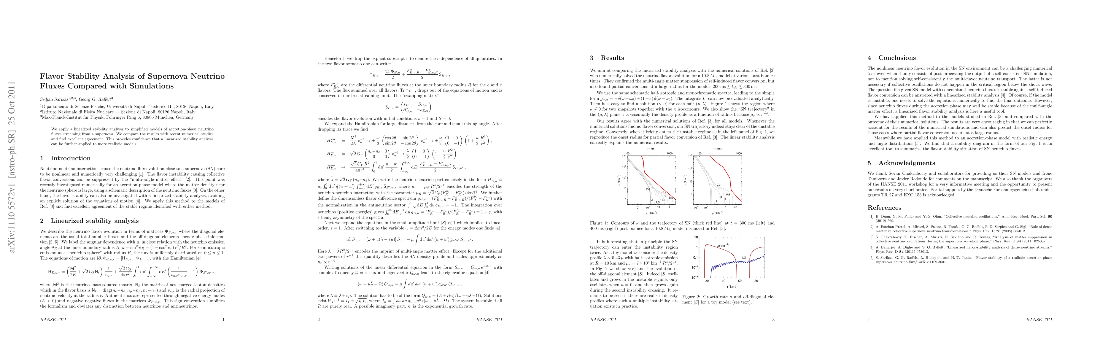 We apply a linearized stability analysis to simplified models of accretion-phase neutrino fluxes streaming from a supernova. We compare the results with recent numerical studies and find excellent agreement. This provides confidence that a linearized stability analysis can be further applied to more realistic models.