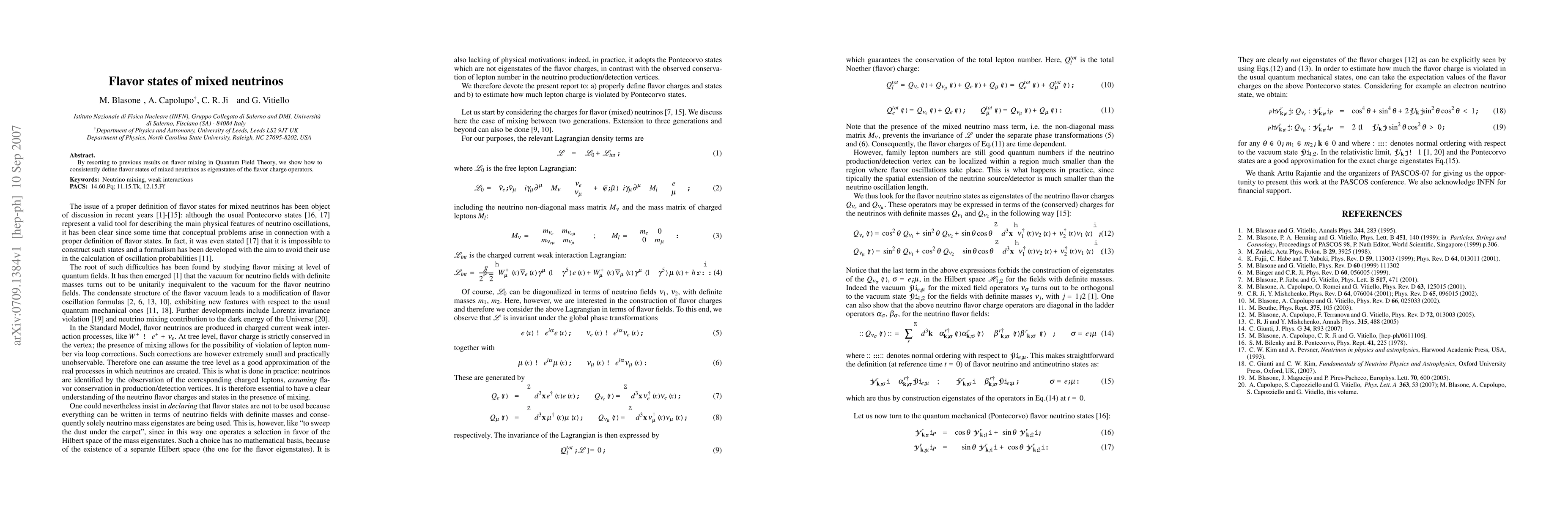 By resorting to previous results on flavor mixing in Quantum Field Theory, we show how to consistently define flavor states of mixed neutrinos as eigenstates of the flavor charge operators.