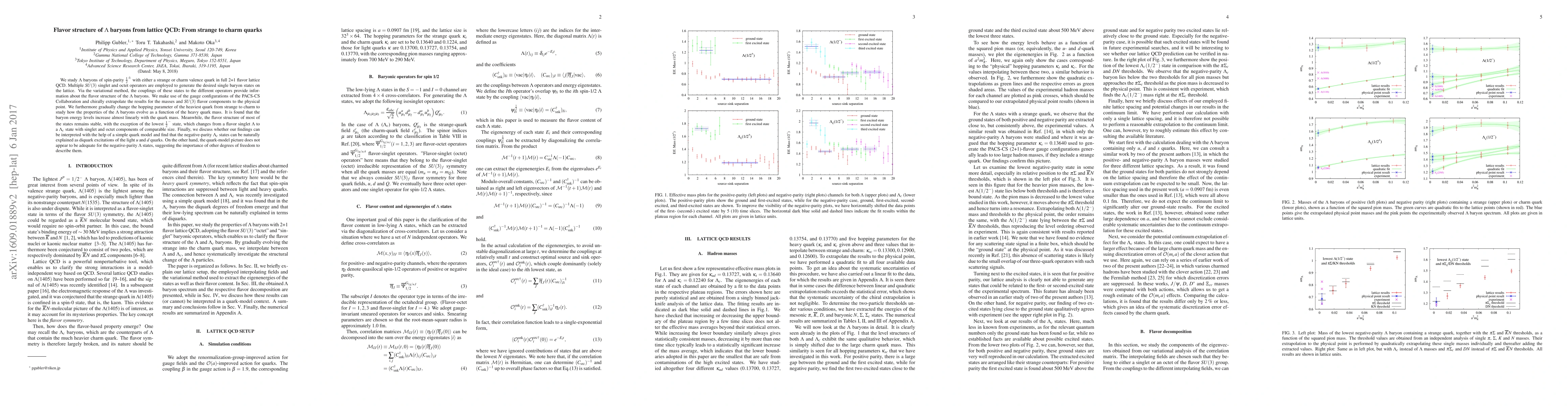We study $\Lambda$ baryons of spin-parity $\frac{1}{2}^{\pm}$ with either a strange or charm valence quark in full 2+1 flavor lattice QCD. Multiple $SU(3)$ singlet and octet operators are employed to generate the desired single baryon states on the lattice. Via the variational method, the couplings of these states to the different operators provide information about the flavor structure of the $\Lambda$ baryons. We make use of the gauge configurations of the PACS-CS Collaboration and chirally extrapolate the results for the masses and $SU(3)$ flavor components to the physical point. We furthermore gradually change the hopping parameter of the heaviest quark from strange to charm to study how the properties of the $\Lambda$ baryons evolve as a function of the heavy quark mass. It is found that the baryon energy levels increase almost linearly with the quark mass. Meanwhile, the flavor structure of most of the states remains stable, with the exception of the lowest $\frac{1}{2}^{-}$ state, which changes from a flavor singlet $\Lambda$ to a $\Lambda_c$ state with singlet and octet components of comparable size. Finally, we discuss whether our findings can be interpreted with the help of a simple quark model and find that the negative-parity $\Lambda_c$ states can be naturally explained as diquark excitations of the light $u$ and $d$ quarks. On the other hand, the quark-model picture does not appear to be adequate for the negative-parity $\Lambda$ states, suggesting the importance of other degrees of freedom to describe them.