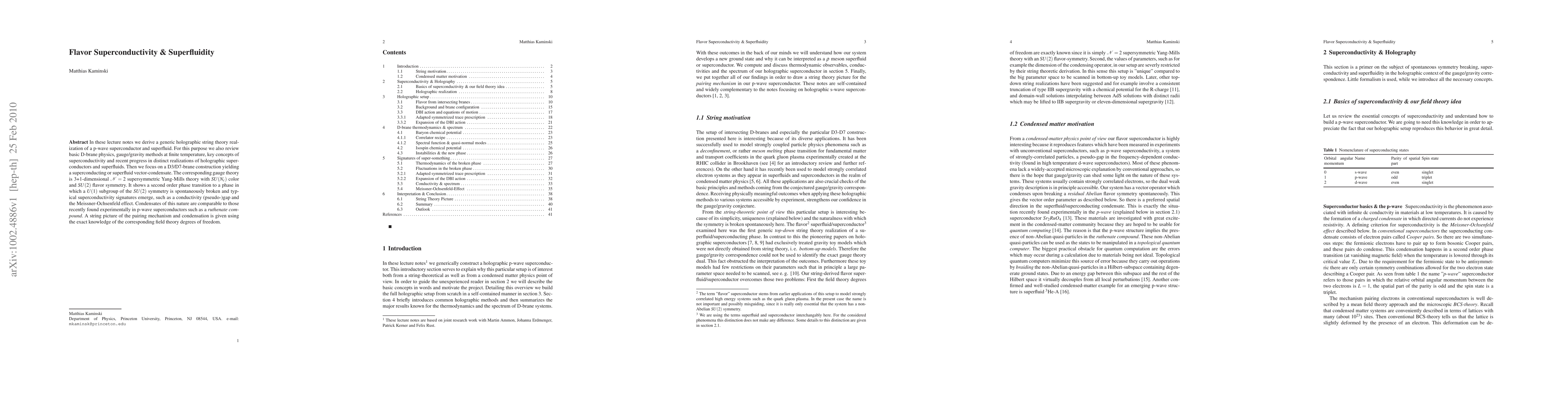 In these lecture notes we derive a generic holographic string theory realization of a p-wave superconductor and superfluid. For this purpose we also review basic D-brane physics, gauge/gravity methods at finite temperature, key concepts of superconductivity and recent progress in distinct realizations of holographic superconductors and superfluids. Then we focus on a D3/D7-brane construction yielding a superconducting or superfluid vector-condensate. The corresponding gauge theory is 3+1-dimensional N=2 supersymmetric Yang-Mills theory with SU(N) color and SU(2) flavor symmetry. It shows a second order phase transition to a phase in which a U(1) subgroup of the SU(2) symmetry is spontaneously broken and typical superconductivity signatures emerge, such as a conductivity (pseudo-)gap and the Meissner-Ochsenfeld effect. Condensates of this nature are comparable to those recently found experimentally in p-wave superconductors such as a ruthenate compound. A string picture of the pairing mechanism and condensation is given using the exact knowledge of the corresponding field theory degrees of freedom.
