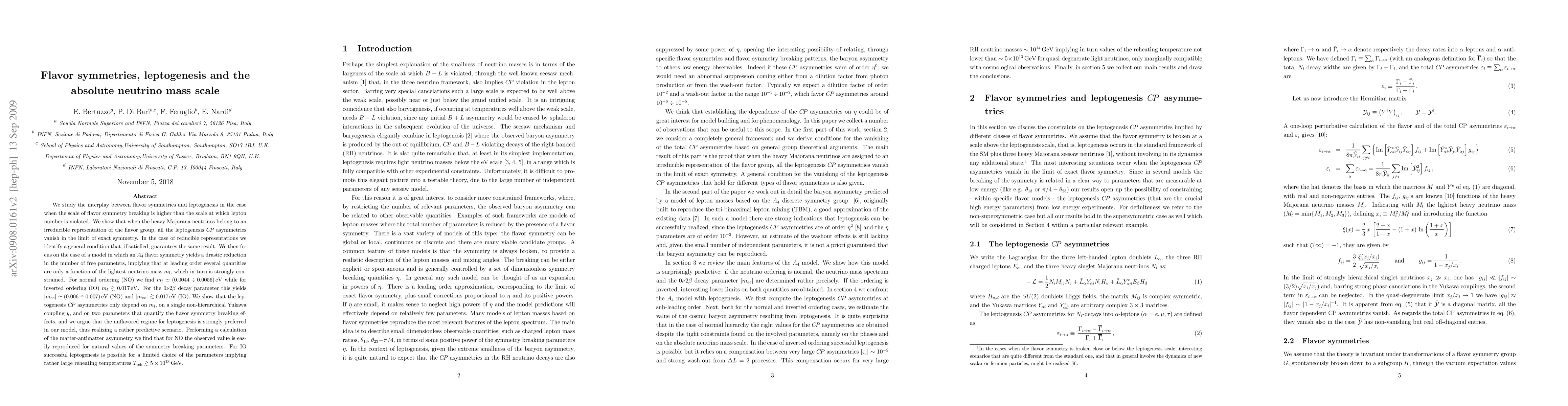 This paper investigates the relationship between flavor symmetries and leptogenesis, demonstrating that exact flavor symmetry leads to vanishing CP asymmetries in leptogenesis. It proposes a model with $A_4$ symmetry that constrains the lightest neutrino mass $m_l$ and predicts its value for both normal and inverted neutrino mass orderings, ultimately favoring a predictive scenario for leptogenesis.