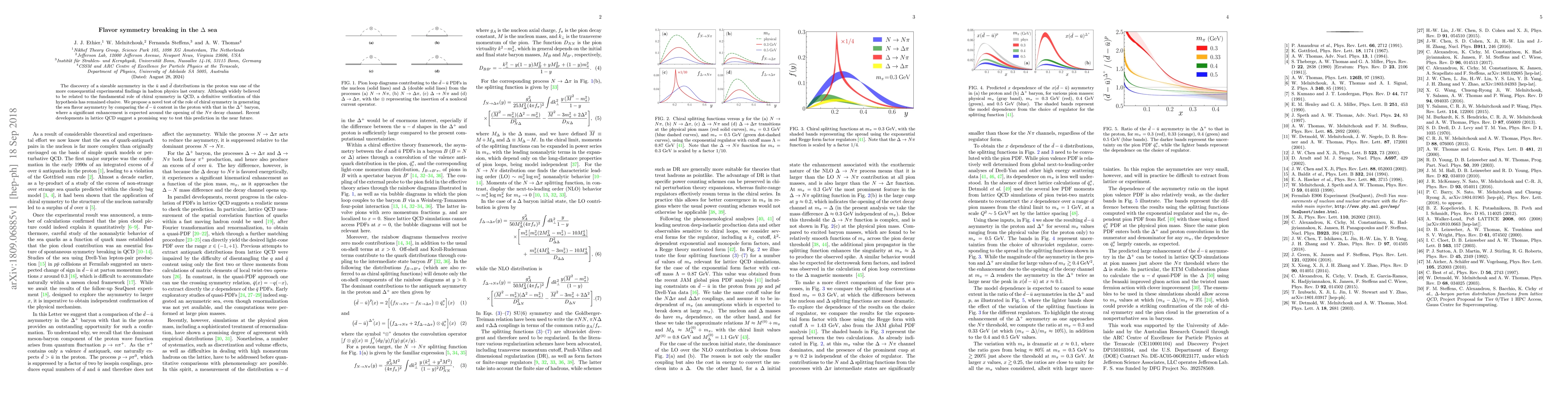 The discovery of a sizeable asymmetry in the $\bar u$ and $\bar d$ distributions in the proton was one of the more consequential experimental findings in hadron physics last century. Although widely believed to be related to the fundamental role of chiral symmetry in QCD, a definitive verification of this hypothesis has remained elusive. We propose a novel test of the role of chiral symmetry in generating the sea flavor asymmetry by comparing the $\bar d-\bar u$ content in the proton with that in the $\Delta^+$ baryon, where a significant enhancement is expected around the opening of the $N \pi$ decay channel. Recent developments in lattice QCD suggest a promising way to test this prediction in the near future.