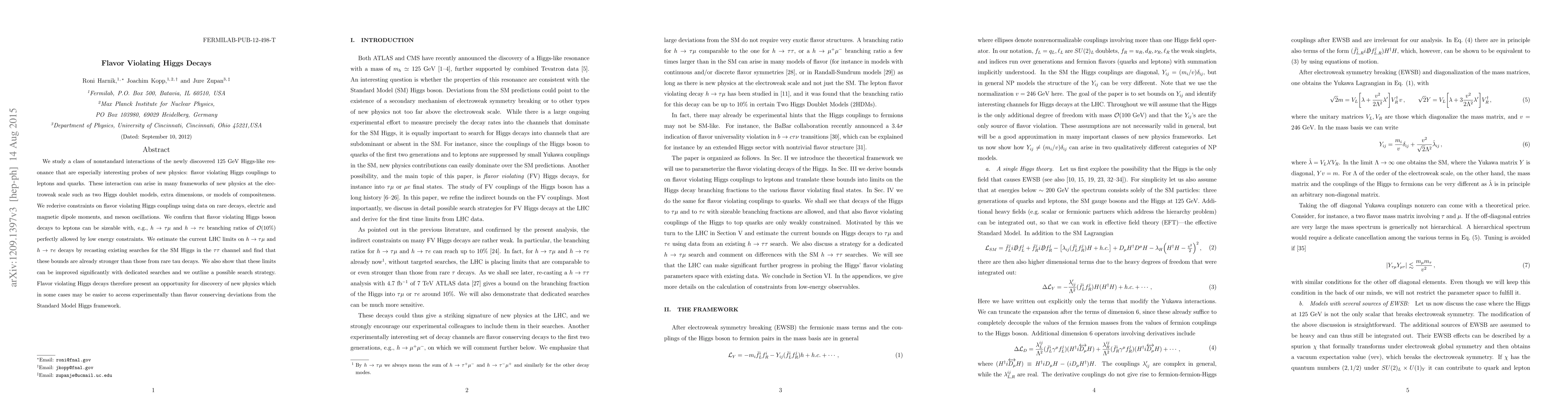 This paper investigates nonstandard flavor-violating interactions of the 125 GeV Higgs boson, focusing on decays to leptons like h -> tau mu and h -> tau e. It finds that these decays can be significant and suggests that current LHC limits are stronger than those from rare decays, highlighting the potential for new physics discovery through dedicated searches.