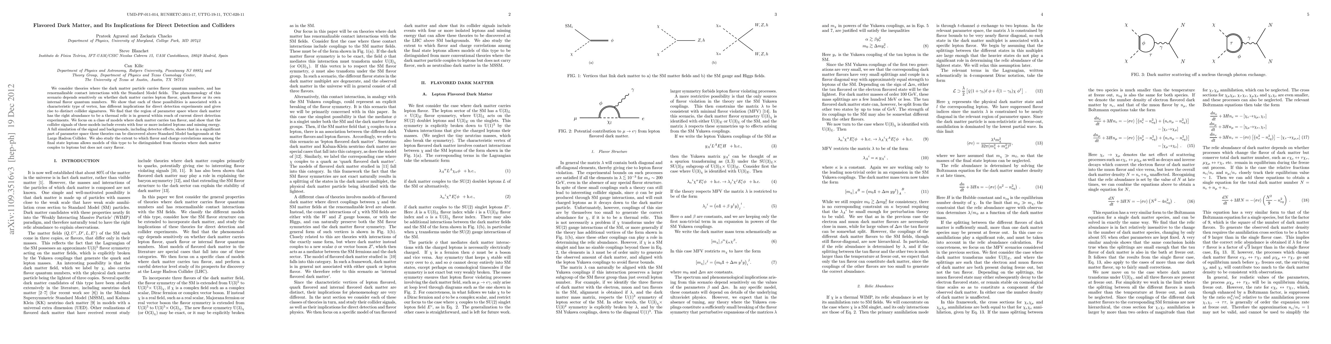The research explores theories where dark matter has flavor quantum numbers and renormalizable contact interactions with Standard Model fields, analyzing direct detection and collider implications based on whether dark matter carries lepton, quark, or internal flavor quantum numbers.