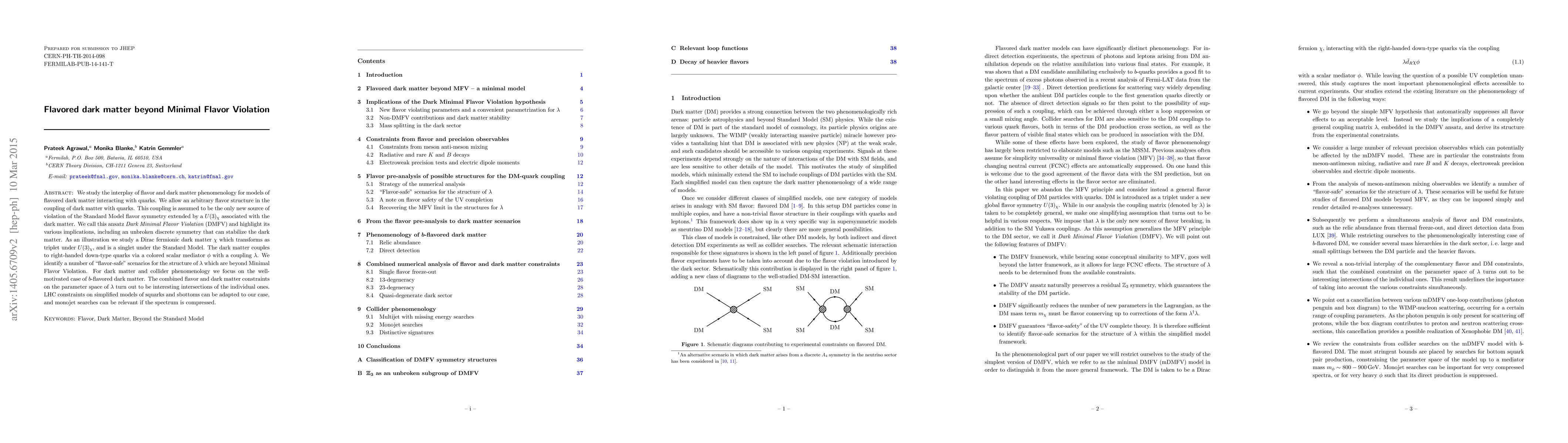 We study the interplay of flavor and dark matter phenomenology for models of flavored dark matter interacting with quarks. We allow an arbitrary flavor structure in the coupling of dark matter with quarks. This coupling is assumed to be the only new source of violation of the Standard Model flavor symmetry extended by a $U(3)_\chi$ associated with the dark matter. We call this ansatz Dark Minimal Flavor Violation (DMFV) and highlight its various implications, including an unbroken discrete symmetry that can stabilize the dark matter. As an illustration we study a Dirac fermionic dark matter $\chi$ which transforms as triplet under $U(3)_\chi$, and is a singlet under the Standard Model. The dark matter couples to right-handed down-type quarks via a colored scalar mediator $\phi$ with a coupling $\lambda$. We identify a number of "flavor-safe" scenarios for the structure of $\lambda$ which are beyond Minimal Flavor Violation. For dark matter and collider phenomenology we focus on the well-motivated case of $b$-flavored dark matter. The combined flavor and dark matter constraints on the parameter space of $\lambda$ turn out to be interesting intersections of the individual ones. LHC constraints on simplified models of squarks and sbottoms can be adapted to our case, and monojet searches can be relevant if the spectrum is compressed.