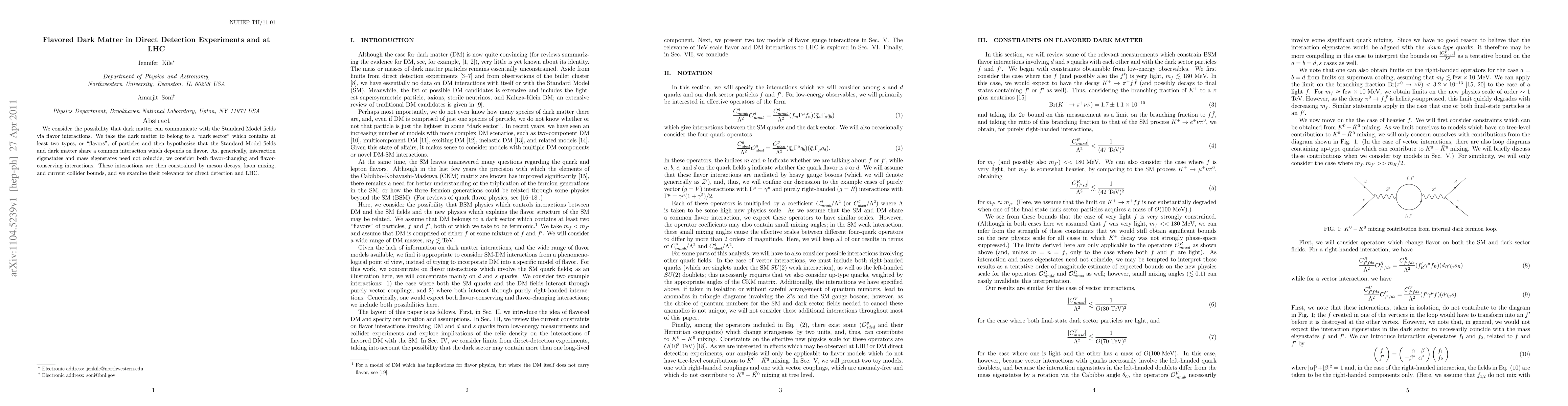 The paper explores the possibility of dark matter communicating with Standard Model fields via flavor interactions, considering a dark sector with at least two types of particles and a shared flavor-dependent interaction.