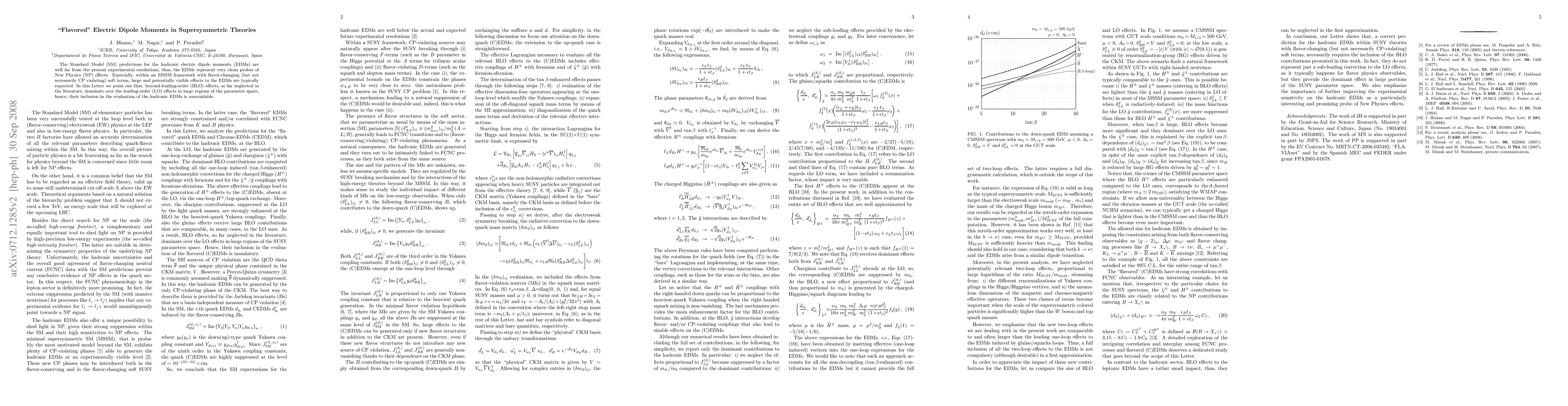 The Standard Model (SM) predictions for the hadronic electric dipole moments (EDMs) are well far from the present experimental resolutions, thus, the EDMs represent very clean probes of New Physics (NP) effects. Especially, within an MSSM framework with flavor-changing (but not necessarily CP violating) soft terms, large and potentially visible effects to the EDMs are typically expected. In this Letter we point out that, beyond-leading-order (BLO) effects, so far neglected in the literature, dominate over the leading-order (LO) effects in large regions of the parameter space, hence, their inclusion in the evaluation of the hadronic EDMs is unavoidable.