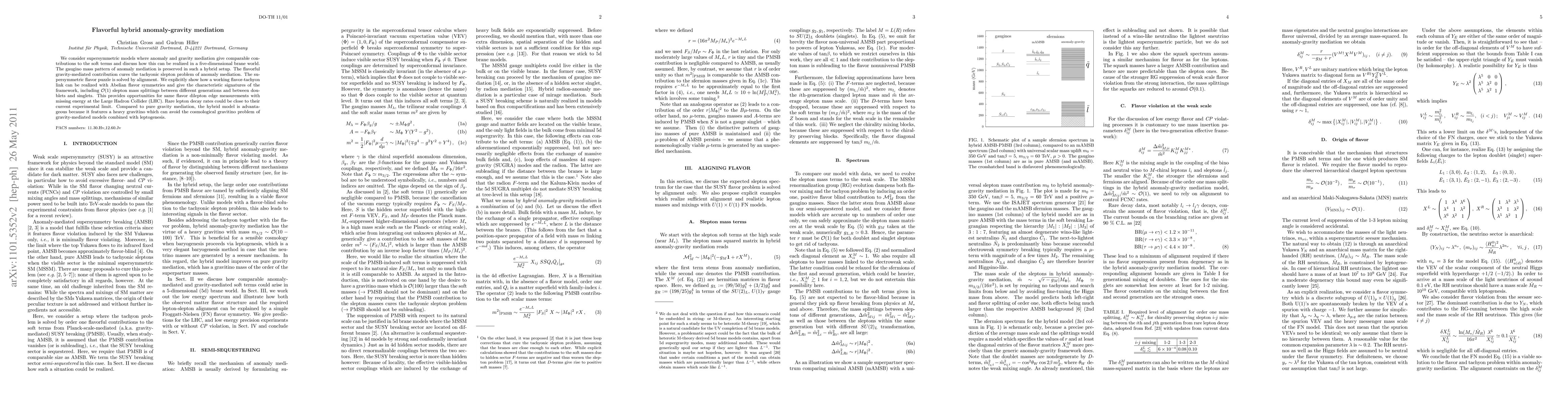 We consider supersymmetric models where anomaly and gravity mediation give comparable contributions to the soft terms and discuss how this can be realized in a five-dimensional brane world. The gaugino mass pattern of anomaly mediation is preserved in such a hybrid setup. The flavorful gravity-mediated contribution cures the tachyonic slepton problem of anomaly mediation. The supersymmetric flavor puzzle is solved by alignment. We explicitly show how a working flavor-tachyon link can be realized with Abelian flavor symmetries and give the characteristic signatures of the framework, including O(1) slepton mass splittings between different generations and between doublets and singlets. This provides opportunities for same flavor dilepton edge measurements with missing energy at the Large Hadron Collider (LHC). Rare lepton decay rates could be close to their current experimental limit. Compared to pure gravity mediation, the hybrid model is advantageous because it features a heavy gravitino which can avoid the cosmological gravitino problem of gravity-mediated models combined with leptogenesis.