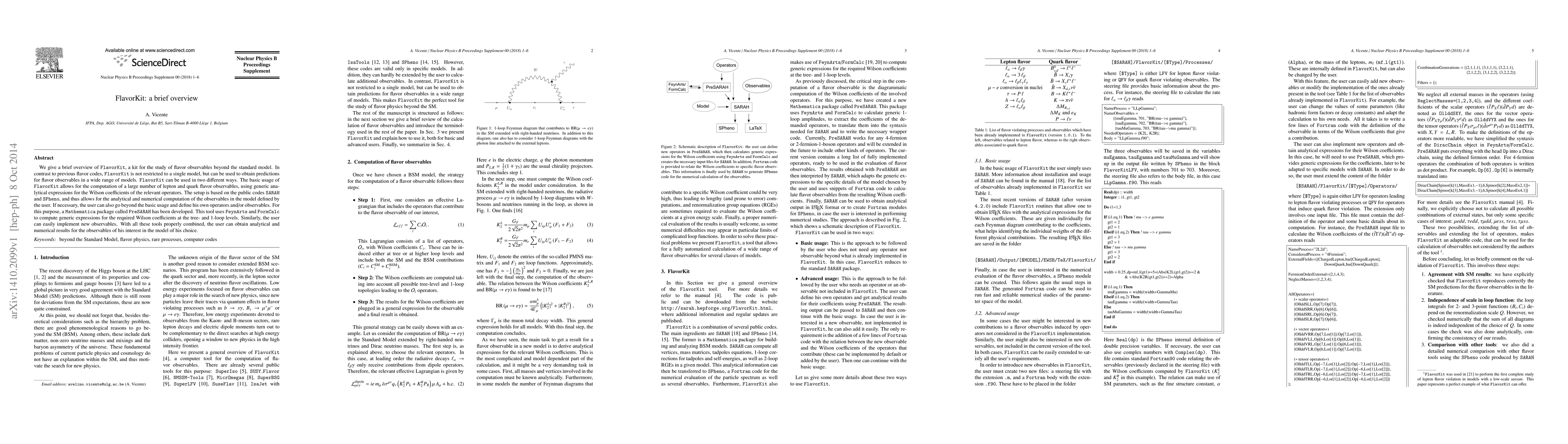 We give a brief overview of FlavorKit, a kit for the study of flavor observables beyond the standard model. In contrast to previous flavor codes, FlavorKit is not restricted to a single model, but can be used to obtain predictions for flavor observables in a wide range of models. FlavorKit can be used in two different ways. The basic usage of FlavorKit allows for the computation of a large number of lepton and quark flavor observables, using generic analytical expressions for the Wilson coefficients of the relevant operators. The setup is based on the public codes SARAH and SPheno, and thus allows for the analytical and numerical computation of the observables in the model defined by the user. If necessary, the user can also go beyond the basic usage and define his own operators and/or observables. For this purpose, a Mathematica package called PreSARAH has been developed. This tool uses FeynArts and FormCalc to compute generic expressions for the required Wilson coefficients at the tree- and 1-loop levels. Similarly, the user can easily implement new observables. With all these tools properly combined, the user can obtain analytical and numerical results for the observables of his interest in the model of his choice.