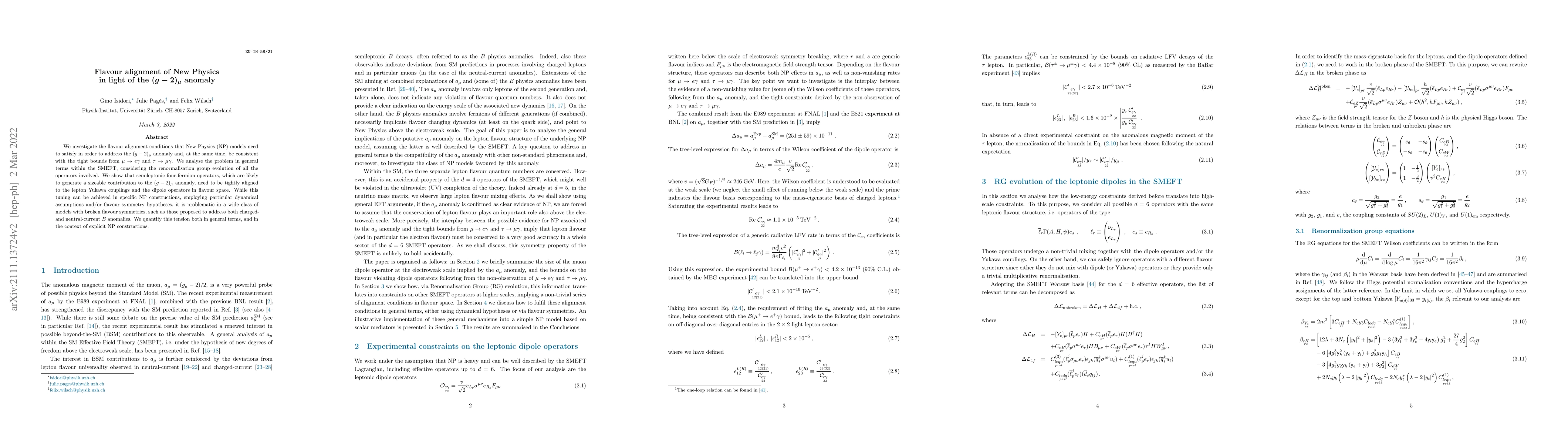 This paper examines how New Physics models must align flavour structures to resolve the $(g-2)_\mu$ anomaly while adhering to stringent constraints from $\mu \to e \gamma$ and $\tau \to \mu \gamma$ decays. It highlights the necessity for semileptonic four-fermion operators to align closely with lepton Yukawa couplings, revealing tensions in models with broken flavour symmetries.