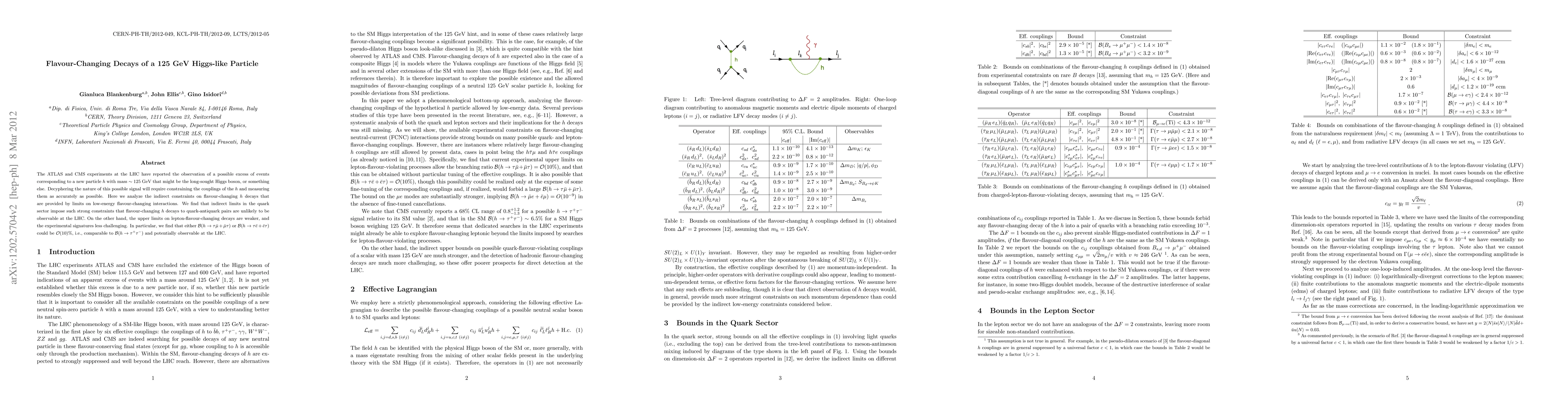 This paper investigates the possible flavour-changing decays of a 125 GeV Higgs-like particle observed at the LHC, finding that quark-sector constraints make such decays unlikely to be observed. However, it suggests that lepton-flavour-changing decays, like $h \to \tau \bar \mu + \bar \mu \tau$ or $h \to \tau \bar e + \bar e \tau$, could be observable at the LHC due to weaker upper limits and more feasible experimental signatures.