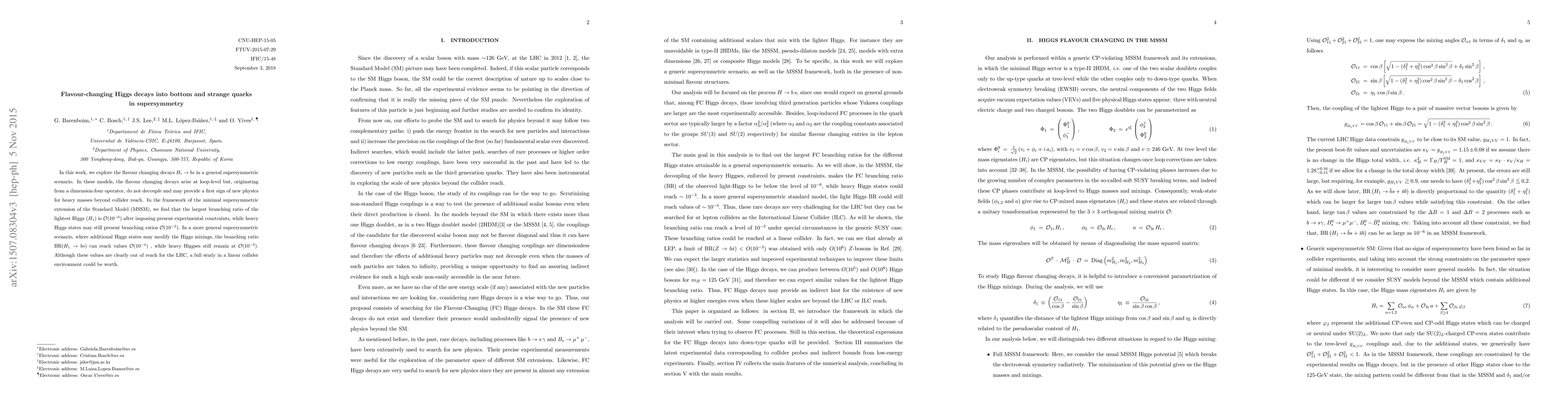 Researchers explored flavour-changing Higgs decays into bottom and strange quarks in supersymmetry, finding that the lightest Higgs' branching ratio is around 10^-6, while heavier Higgses could reach up to 10^-3.
