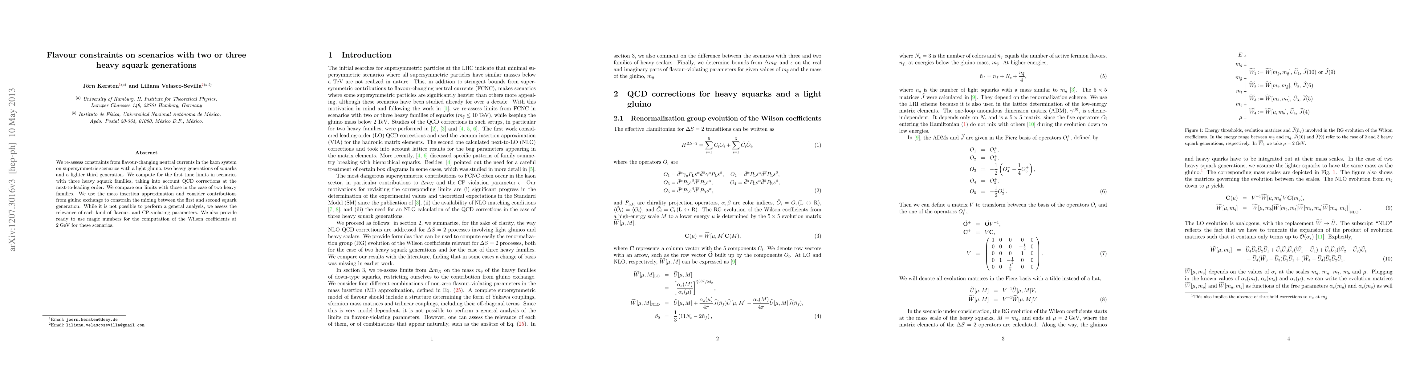 We re-assess constraints from flavour-changing neutral currents in the kaon system on supersymmetric scenarios with a light gluino, two heavy generations of squarks and a lighter third generation. We compute for the first time limits in scenarios with three heavy squark families, taking into account QCD corrections at the next-to-leading order. We compare our limits with those in the case of two heavy families. We use the mass insertion approximation and consider contributions from gluino exchange to constrain the mixing between the first and second squark generation. While it is not possible to perform a general analysis, we assess the relevance of each kind of flavour- and CP-violating parameters. We also provide ready to use magic numbers for the computation of the Wilson coefficients at 2 GeV for these scenarios.