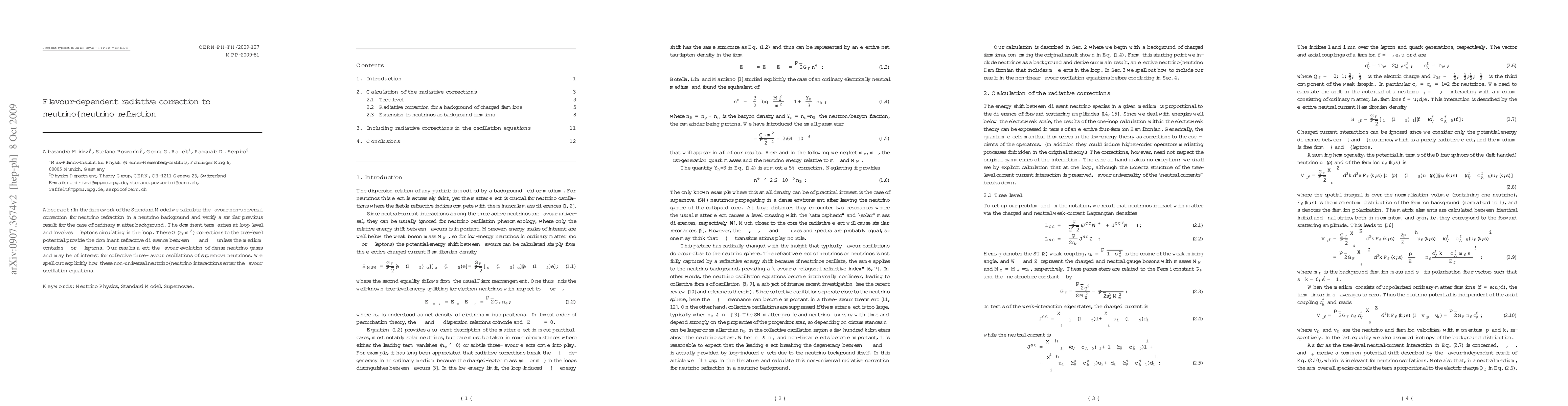 This paper calculates the flavour-dependent radiative correction for neutrino refraction in a neutrino background, showing that tau leptons in the loop lead to significant O(G_F m_tau^2) corrections. These corrections impact the flavour evolution of dense neutrino gases and may influence collective three-flavour oscillations in supernova neutrinos.