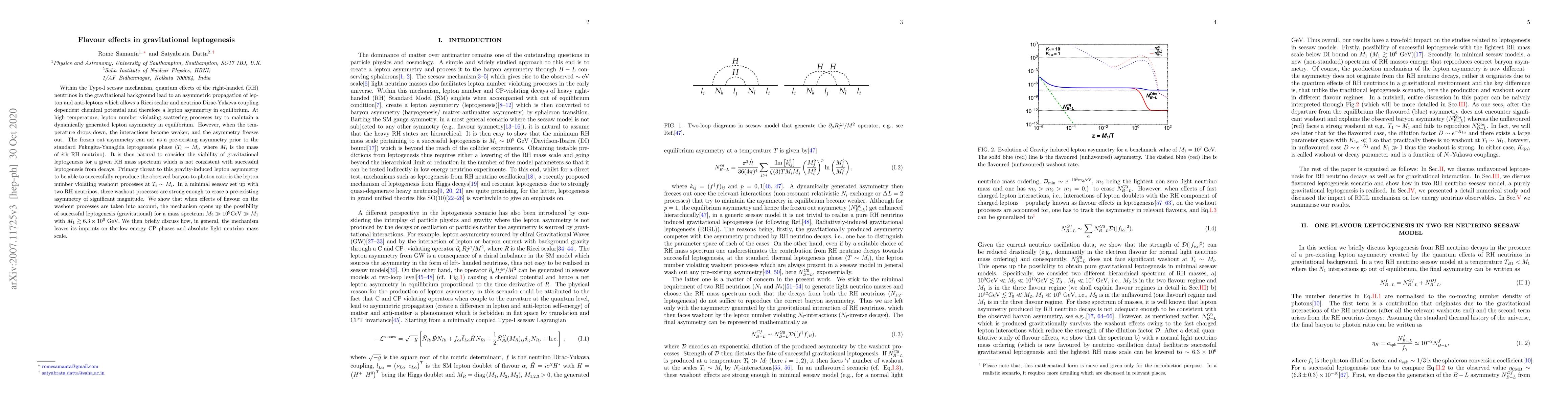 Within the Type-I seesaw mechanism, quantum effects of the right-handed (RH) neutrinos in the gravitational background lead to an asymmetric propagation of lepton and anti-leptons which allows a Ricci scalar and neutrino Dirac-Yukawa coupling dependent chemical potential and therefore a lepton asymmetry in equilibrium. At high temperature, lepton number violating scattering processes try to maintain a dynamically generated lepton asymmetry in equilibrium. However, when the temperature drops down, the interactions become weaker, and the asymmetry freezes out. The frozen out asymmetry can act as a pre-existing asymmetry prior to the standard Fukugita-Yanagida leptogenesis phase ($T_i\sim M_i$, where $M_i$ is the mass of $i$th RH neutrino). It is then natural to consider the viability of gravitational leptogenesis for a given RH mass spectrum which is not consistent with successful leptogenesis from decays. Primary threat to this gravity-induced lepton asymmetry to be able to successfully reproduce the observed baryon-to-photon ratio is the lepton number violating washout processes at $T_i\sim M_i$. In a minimal seesaw set up with two RH neutrinos, these washout processes are strong enough to erase a pre-existing asymmetry of significant magnitude. We show that when effects of flavour on the washout processes are taken into account, the mechanism opens up the possibility of successful leptogenesis (gravitational) for a mass spectrum $M_2\gg 10^9 {\rm GeV}\gg M_1$ with $M_1 \gtrsim 6.3 \times 10^6$ GeV. We then briefly discuss how, in general, the mechanism leaves its imprints on the low energy CP phases and absolute light neutrino mass scale.