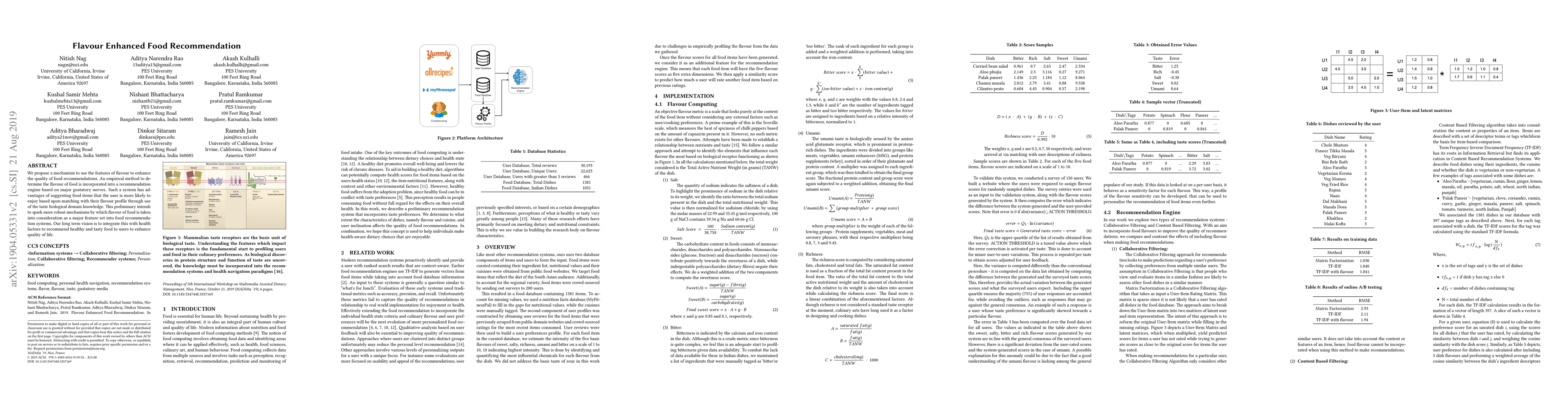 We propose a mechanism to use the features of flavour to enhance the quality of food recommendations. An empirical method to determine the flavour of food is incorporated into a recommendation engine based on major gustatory nerves. Such a system has advantages of suggesting food items that the user is more likely to enjoy based upon matching with their flavour profile through use of the taste biological domain knowledge. This preliminary intends to spark more robust mechanisms by which flavour of food is taken into consideration as a major feature set into food recommendation systems. Our long term vision is to integrate this with health factors to recommend healthy and tasty food to users to enhance quality of life.