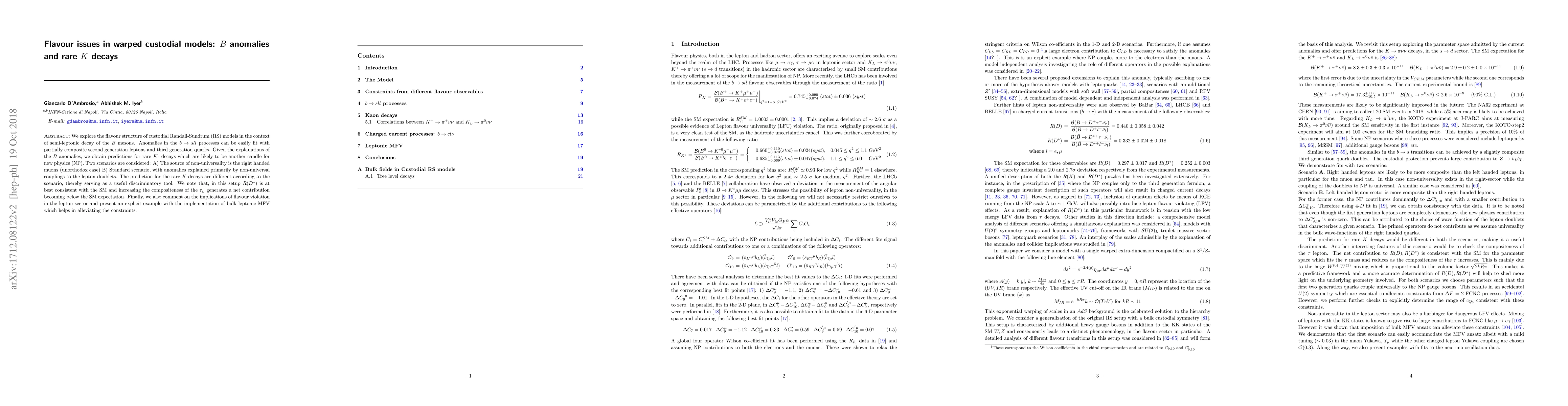 A recent research paper explores deviations in $B$ meson decay rates and rare $K$-decay predictions in warped custodial models, proposing two scenarios that differ in their explanation of these anomalies.