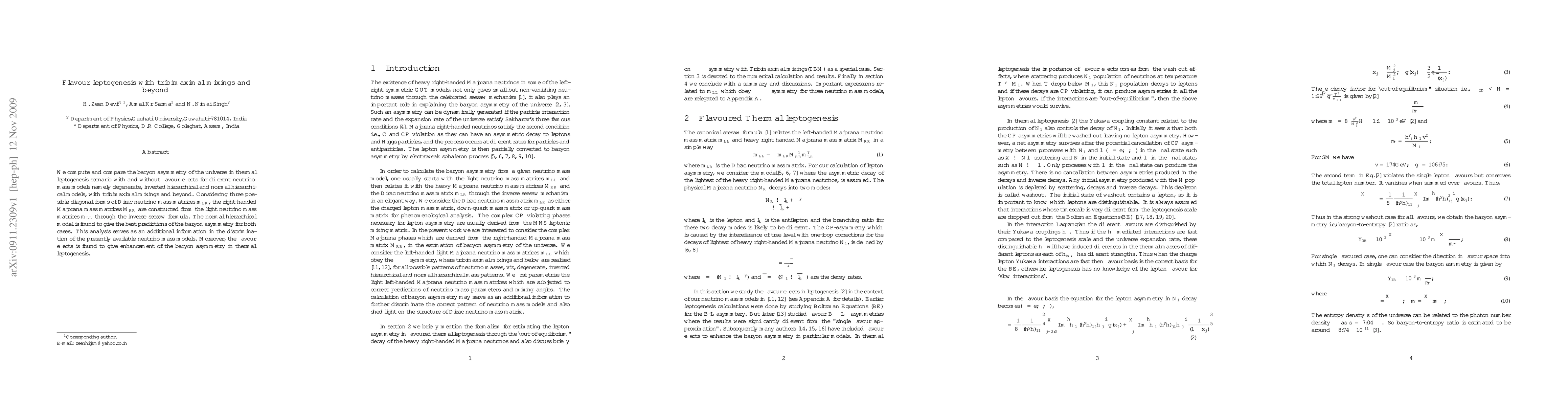 This paper investigates the baryon asymmetry in thermal leptogenesis with and without flavour effects across various neutrino mass models, including tribimaximal mixings. The normal hierarchical model yields the best predictions, with flavour effects enhancing the baryon asymmetry, providing further insights into neutrino mass model discrimination.