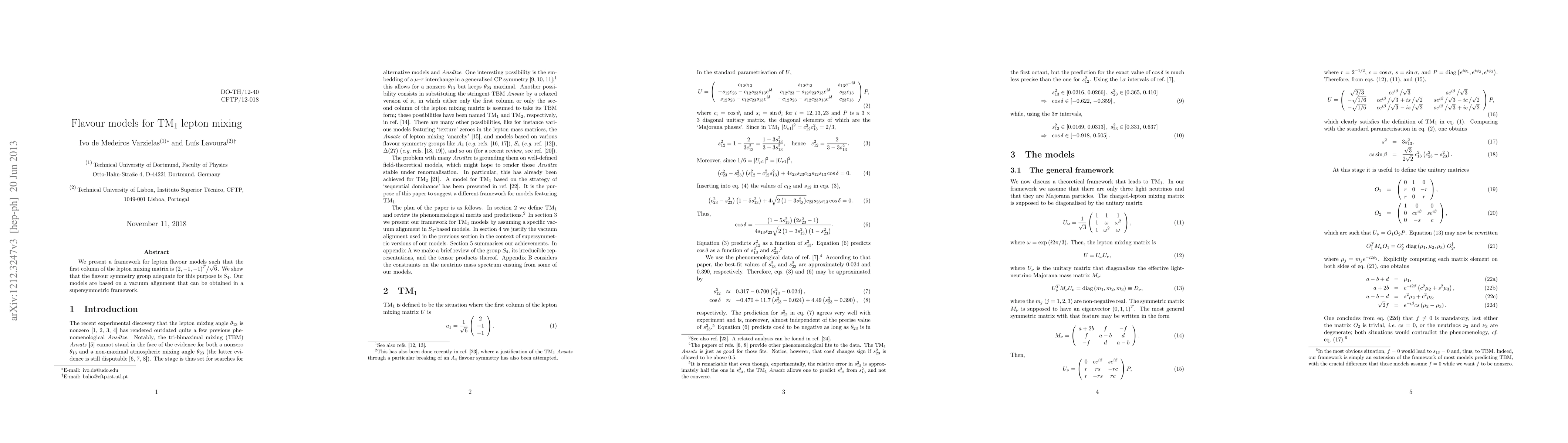 This paper proposes a framework for lepton flavour models where the first column of the lepton mixing matrix is (2,-1,-1)/sqrt(6), utilizing the S4 symmetry group for alignment, and demonstrates its feasibility within a supersymmetric context.