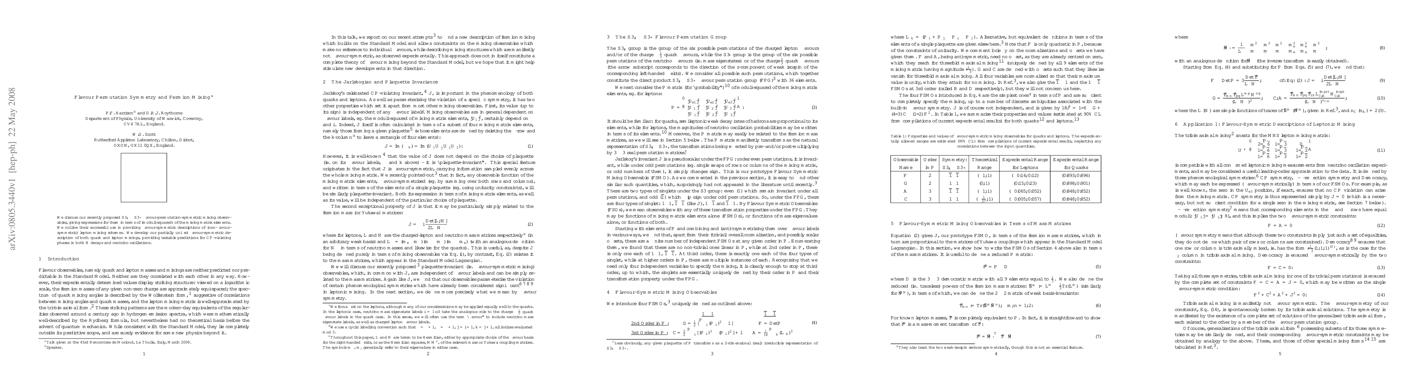 We discuss our recently proposed S3(down)xS3(up) flavour-permutation-symmetric mixing observables, giving expressions for them in terms of (moduli-squared) of the mixing matrix elements. We outline their successful use in providing flavour-symmetric descriptions of (non-flavour-symmetric) lepton mixing schemes. We develop our partially unified flavour-symmetric description of both quark and lepton mixings, providing testable predictions for CP-violating phases in both B decays and neutrino oscillations.