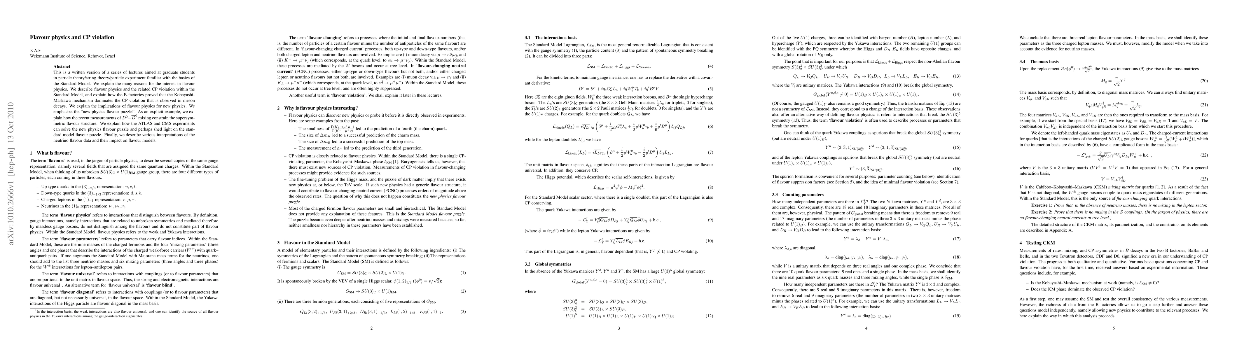 This paper summarizes lectures on flavour physics and CP violation, highlighting the role of the Kobayashi-Maskawa mechanism in observed CP violation in meson decays, and discussing the potential of the ATLAS and CMS experiments to address the "new physics flavour puzzle." It also covers constraints from D0-D0 mixing on supersymmetric flavour structures and implications of neutrino flavour data on flavour models.