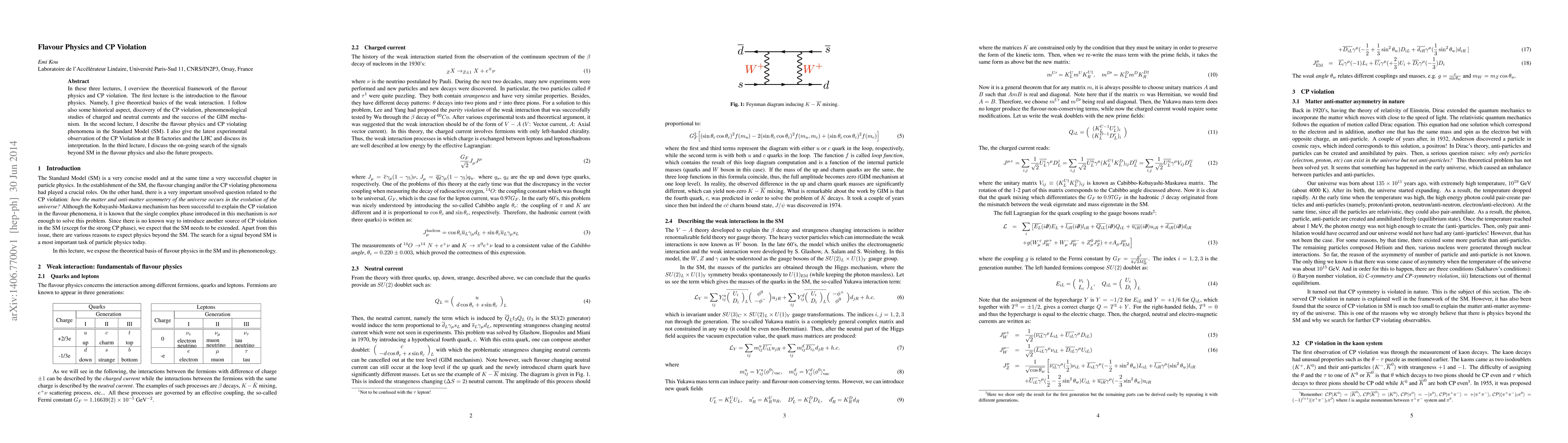 The research provides an overview of the theoretical framework of flavour physics and CP violation, covering the basics of the weak interaction, historical aspects, discovery of CP violation, phenomenological studies, and the success of the GIM mechanism.