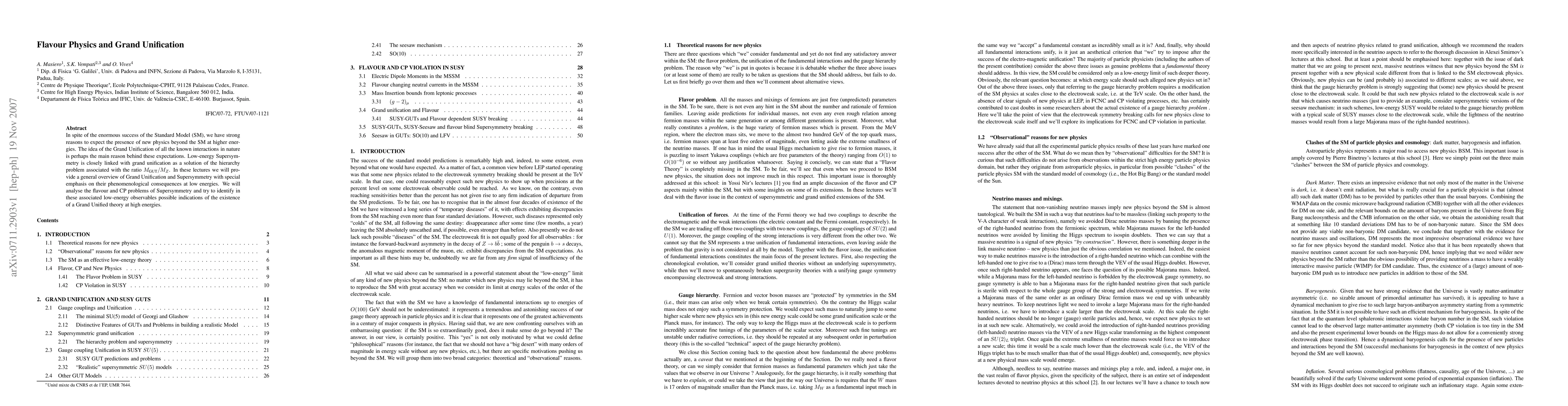 This paper offers an overview of Grand Unification theories and their connection to Supersymmetry, focusing on their phenomenological implications, including the flavor and CP problems. It aims to identify potential low-energy observables that could hint at the presence of a Grand Unified theory at higher energies.
