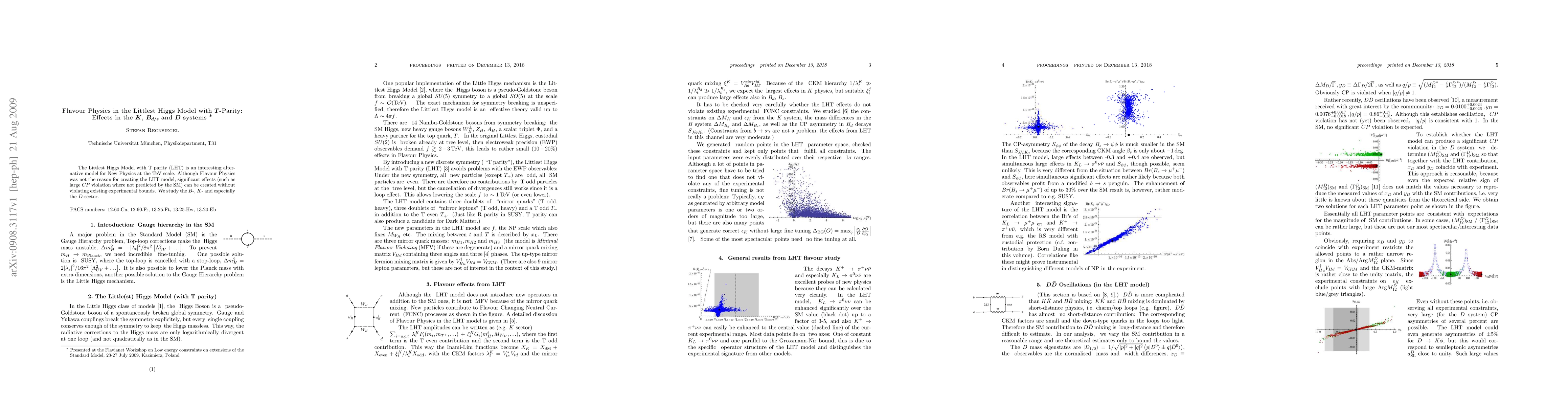 Summary: This paper investigates the effects of the Littlest Higgs Model with T-parity (LHT) on flavour physics in the K, B_d/s, and D meson systems, revealing significant CP violation and potential new physics predictions without contradicting existing experimental data. The study focuses particularly on the D-sector.
